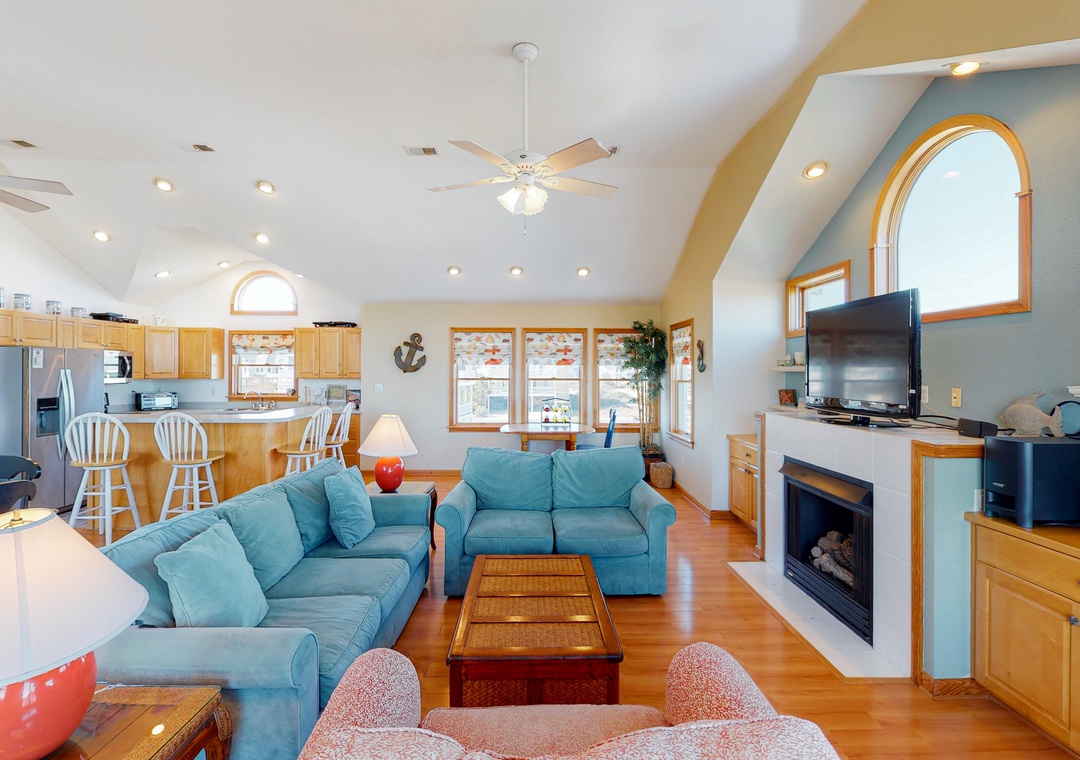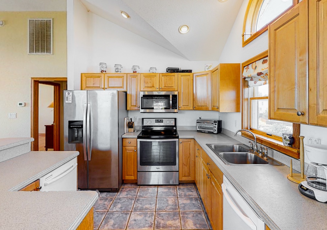 Top Level: Offers a large great room with gas fireplace, 47 in. TV/DVD with Bose surround sound. The well-equipped kitchen provides the tools to prepare a feast for all. A King main bedroom with whirlpool tub along with half bath complete this level.