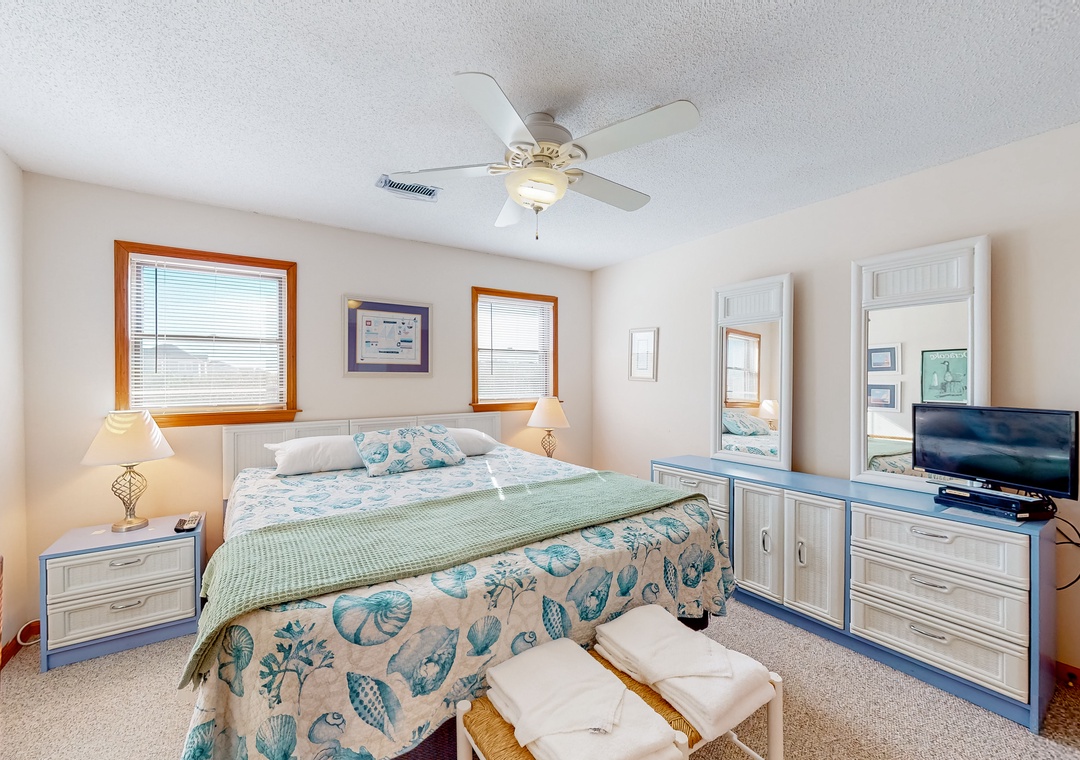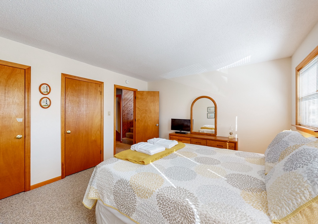 Queen Bedroom with TV and Blu-Ray Player. Bedroom with 2 Bunk Beds, TV and Blu-Ray Player. Hall Bathroom.