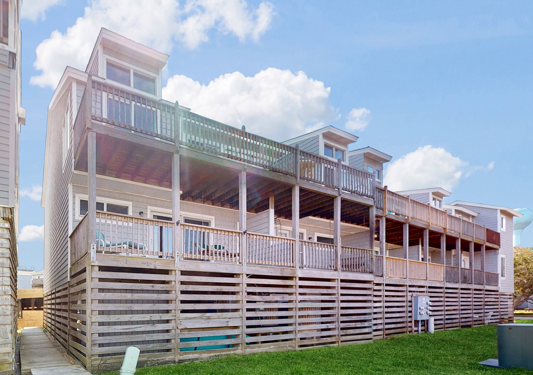 Located just a stone's throw away from the beach access, this three-story townhouse is perfect for a family getaway or a snowbird retreat. Laze in the shared outdoor pool or stay active on the tennis and pickleball courts. A supermarket within walking distance makes stocking up on essentials for your stay easy. Just a short drive away, embark on a Wild Horse Adventure Tour and witness the majestic wild horses that roam freely along the Outer Banks. Or head to Corolla Watersports for some kayaking and paddleboarding. (The condition of beach walkways, decks, stairs, and access changes quickly with wind, weather, erosion, and natural sand migration. We make every effort to maintain the accurate status of home amenities but do not guarantee their complete accuracy due to unexpected changes to the coastline.)