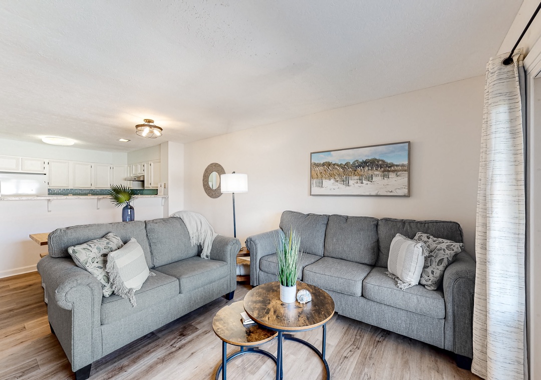 Inside, you will find all of the comforts needed for a memorable stay including high-speed WiFi, plush furnishings, an open layout, and access to your very own balcony. Sip a morning coffee or evening glass of wine in the temperate breeze to really slip into the coastal mindset. And, when everyone works up an appetite, the full kitchen is equipped with everything you need to prepare tasty recipes with ease. And, don't worry about packing your entire wardrobe, as a private washer and dryer are provided to keep bathing suits and beach towels clean during your stay.