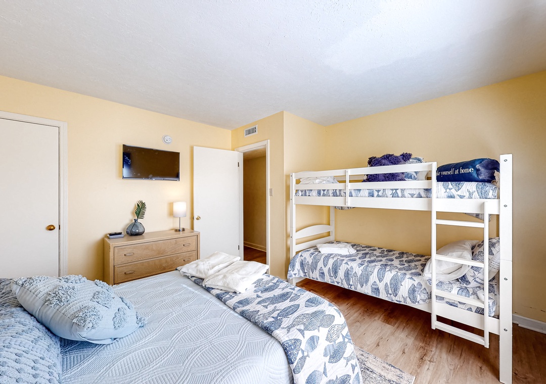 Find yourself making the best beach memories in no time here at Bammer's Beach Spot, a fantastic oceanside condo mere steps from the warm sand and crashing waves. Aside from enjoying the beautiful Corolla Beaches, this gem sits in a great neighborhood for a leisurely stroll or bike ride after full days of excitement. Moreover, the community tennis courts are just across the street for some friendly competition and restaurants and shopping are less than a mile away.