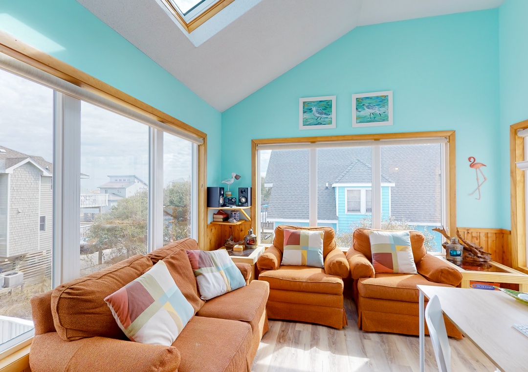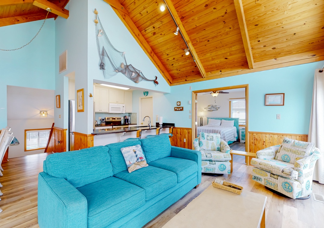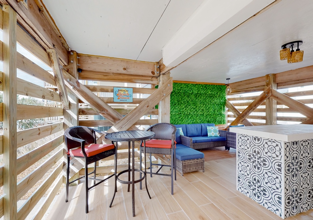 Inside the home, you’ll find a spacious and inviting interior with all the essentials and more. Relax beneath vaulted ceilings in the open living area and doze off in one of five bedrooms. Work from home at the beach in your own office. Whip up delicious dishes in the sparkling full kitchen with everything you need for home-cooked meals. Then dine alfresco with a fresh breeze on one of the two sun-kissed decks! Settle in for a read on the screened-in porch or entertain yourself with Roku streaming TVs throughout the house. Huddle up for game night with a large collection of board games and puzzles. Relax and enjoy your time at Boracay Beach House.