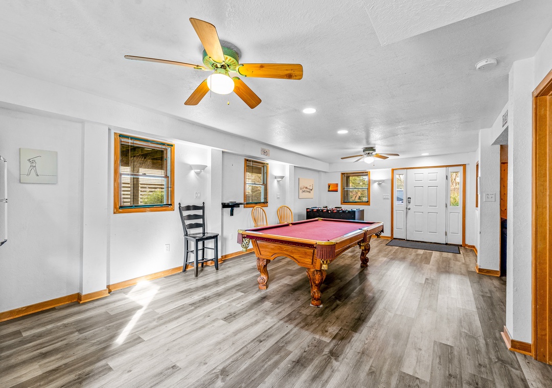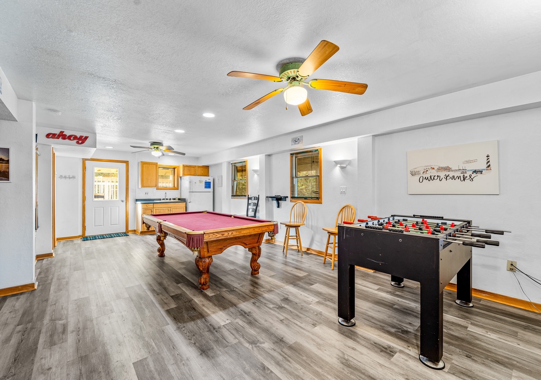 Step into this little piece of pastel paradise and feel at home in the sunlit, open-concept living areas filled with ample seating, large smart TVs, high ceilings, and charming beach decor. Snuggle up on the sofa to stream your favorite movies or have a pool or Foosball tournament in the game room! A well-appointed kitchen boasts modern appliances and lots of counter space for creating effortless home-cooked meals. Even better, have a barbecue on the spacious deck while sharing some laughs and local brews with friends. The bedrooms are inviting with soft, cozy linens and thoughtful accents - the perfect spot to wind down after a great day. As the sun sets, treat yourself to a revitalizing soak in the private hot tub, adding even more incredible memories to your vacation experience.