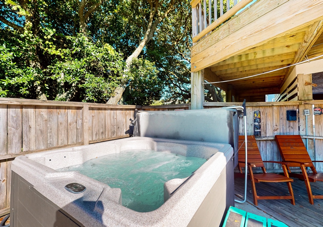 Relax in the private pool, or unwind in the hot tub after a day of exploring the nearby ocean. Inside, you'll find cozy bedrooms with a king bed, double bed, and twin bed, as well as entertainment options like cable TV, a DVD player, and Netflix streaming.