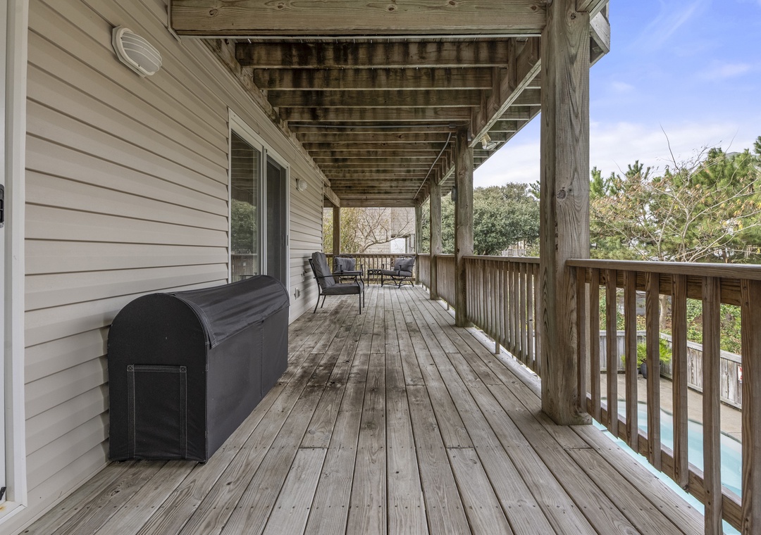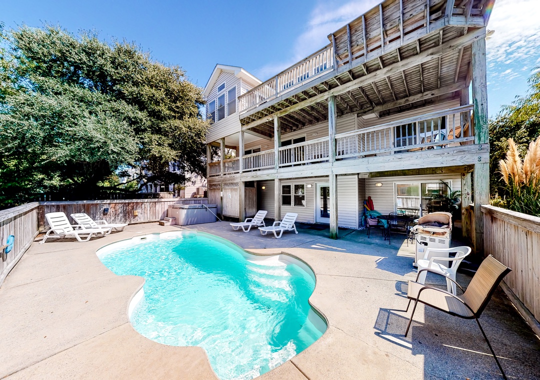 Boasting multiple layers of decks, a fully-equipped game room, and a private pool - this home is the ultimate family-friendly retreat! You're just 605 feet from the beach, and there will be a spot in the hot tub waiting for you when you get back ( you can rinse off in one of the two outdoor showers first). Central air-conditioning will ensure everyone's comfortable while hanging out in the home's numerous comfy corners. Enjoy a refreshment in the game room's wet bar, or make up a full meal in the well-equipped full kitchen. The private washer/dryer will take care of everyone's swimsuits. Barbecue fans will love having a private gas grill at their disposal on the lowest floor. When you're ready to kick back and enjoy a beverage, just pick a deck, any deck!