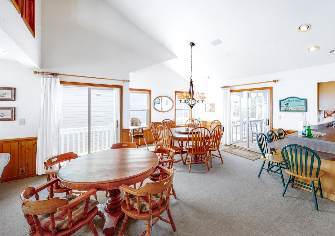 Top Level: Has a well-equipped kitchen with new appliances, large dining area with 2 round tables ideal for meals or family game time, a spacious great room that opens to a screened porch and a sun deck perfect for reading a book or enjoying incredible views of the beach. Also on this level is a King mbr with Jacuzzi. A few steps up you will find a Queen mbr and a loft and sitting area with a 46 in. LCD TV/DVD. Here you will find the most incredible views of the beach from the deck.