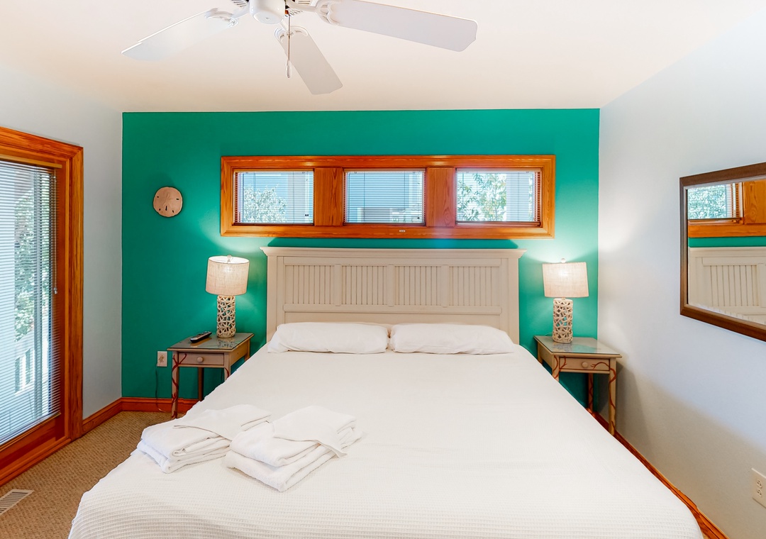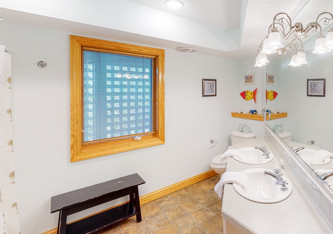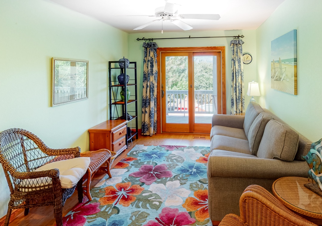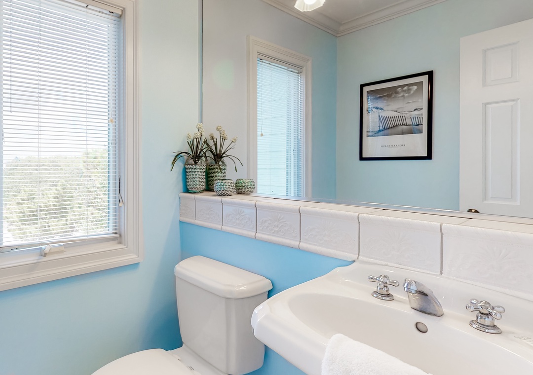 Top Level: main bedroom with TV, large tiled shower and slider access to oceanside deck; great room with gas fireplace, deck access, TV, Blu-ray player; dining room with seating for 12; kitchen with breakfast bar and seating for three; powder room. Ships watch reading nook with library and seating.