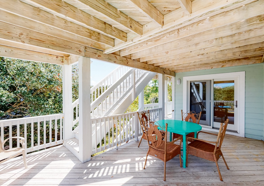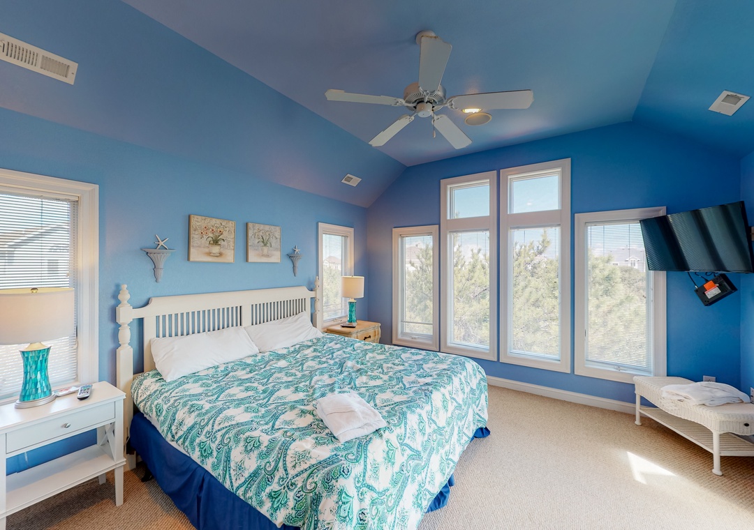We thoroughly enjoyed our stay at this home in Corolla! The king beds in every bedroom was a plus (4). There were 4 bunk beds in one room below as well, but we didn’t use those. Each bedroom leads to a wrap around porch on the outside. Lots of light all around especially in the main living space and dining area! Curtains and blinds available to close at night. The house is a block away from the beach and we walked there 3 times during our stay. Great place to relax and get away from everything!- Reviewed On: 4/14/2025