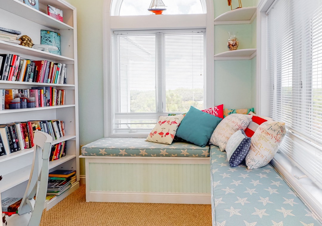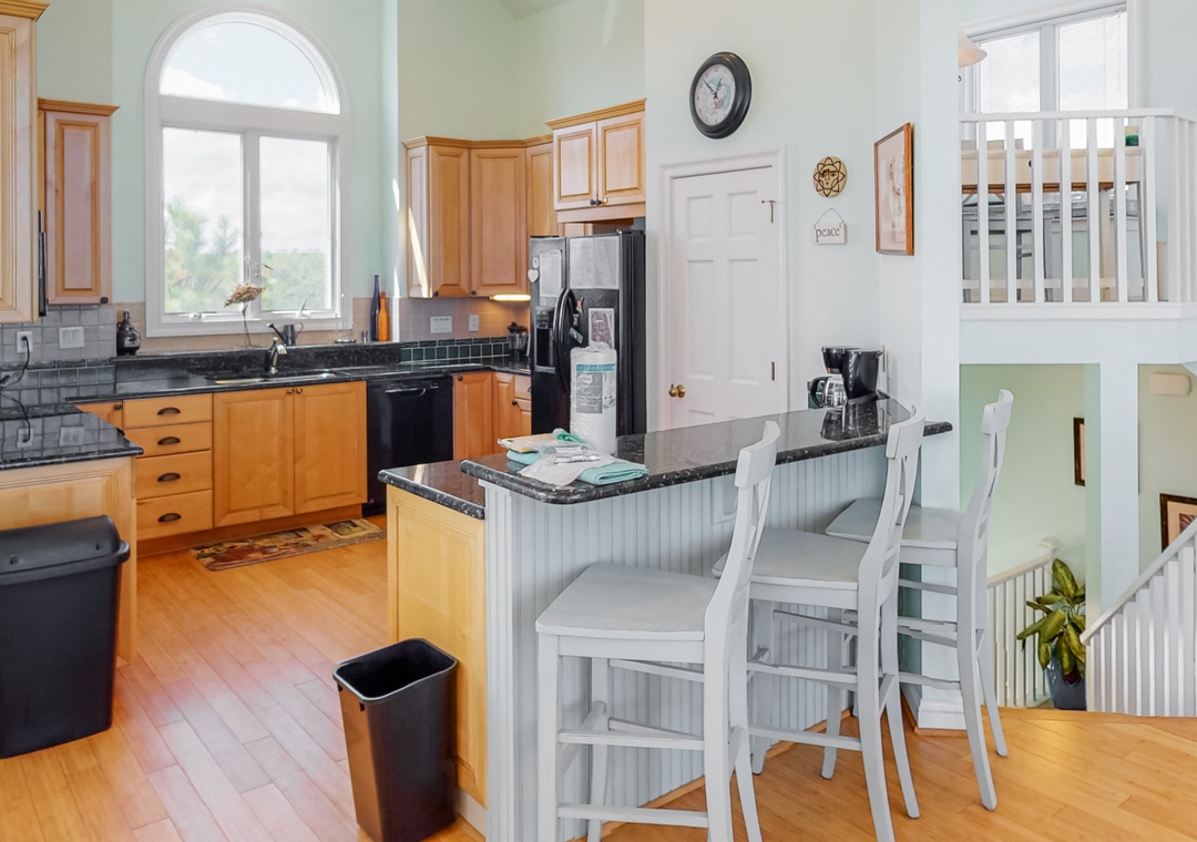 A Wave From It All is a lovely seaside home in the pristine community of Pine Island! Designed to be a place of relaxation and rejuvenation, it features beautiful beachy décor in a spacious design that allows for the whole crew to get together. Or, steal away to the cozy ships watch and grab a book from the library and catch the sunset views from the bench seating. The nicely equipped kitchen is a cook’s dream and the dining table has seating for 12 and you can fit three more at the bar. There are several new appliances (2022). In addition to the hot tub and large pool with nice lounge chairs, the spacious decks have tons of seating and are prime for catching seaside breezes. There are plenty of family games, a pool table, corn hole, volleyball, basketball, and a delightful kids’ bunk bed-playroom. There’s even a kitchenette on the ground level with a microwave and a full-size fridge for keeping poolside drinks chilled. You also have access to two large community pools, tennis courts, and biking trails throughout the quiet subdivision that are perfect for leisurely afternoon strolls. A Wave From It All is the ideal beach vacation home for everyone in the family.