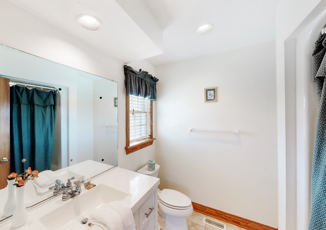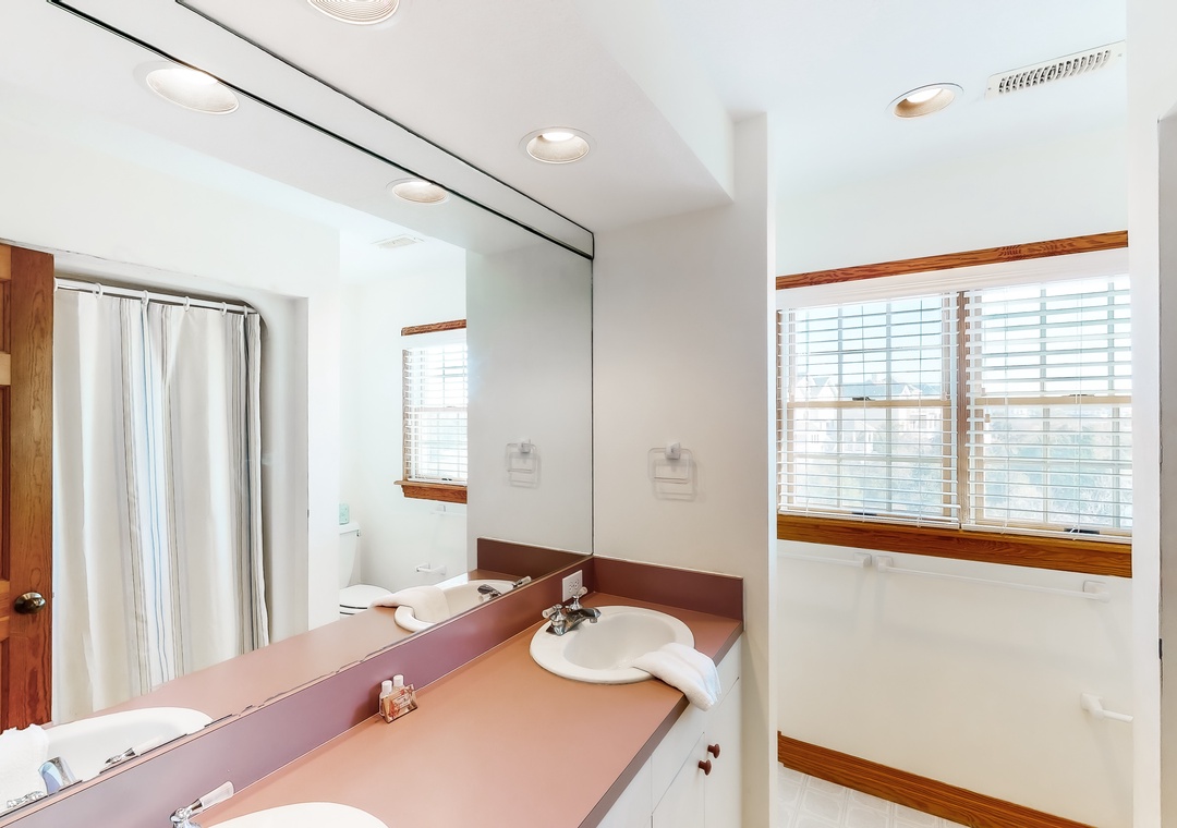 Mid Level: Features a main bedroom with a TV. Two bedrooms share a bathroom. There also is a hot tub on the eastern deck.