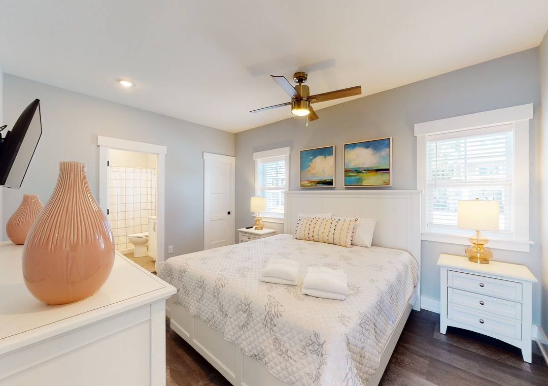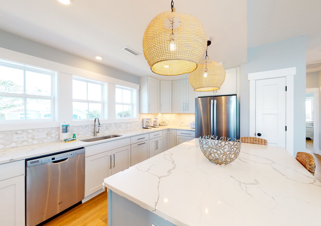 Whip up delicious dishes in the sparkling full kitchen, configured with stainless steel appliances and expansive stone counter space. Then dine alfresco with a view of the water! Extra perks include free WiFi, central air-conditioning, a gas grill, and a private washer/dryer.