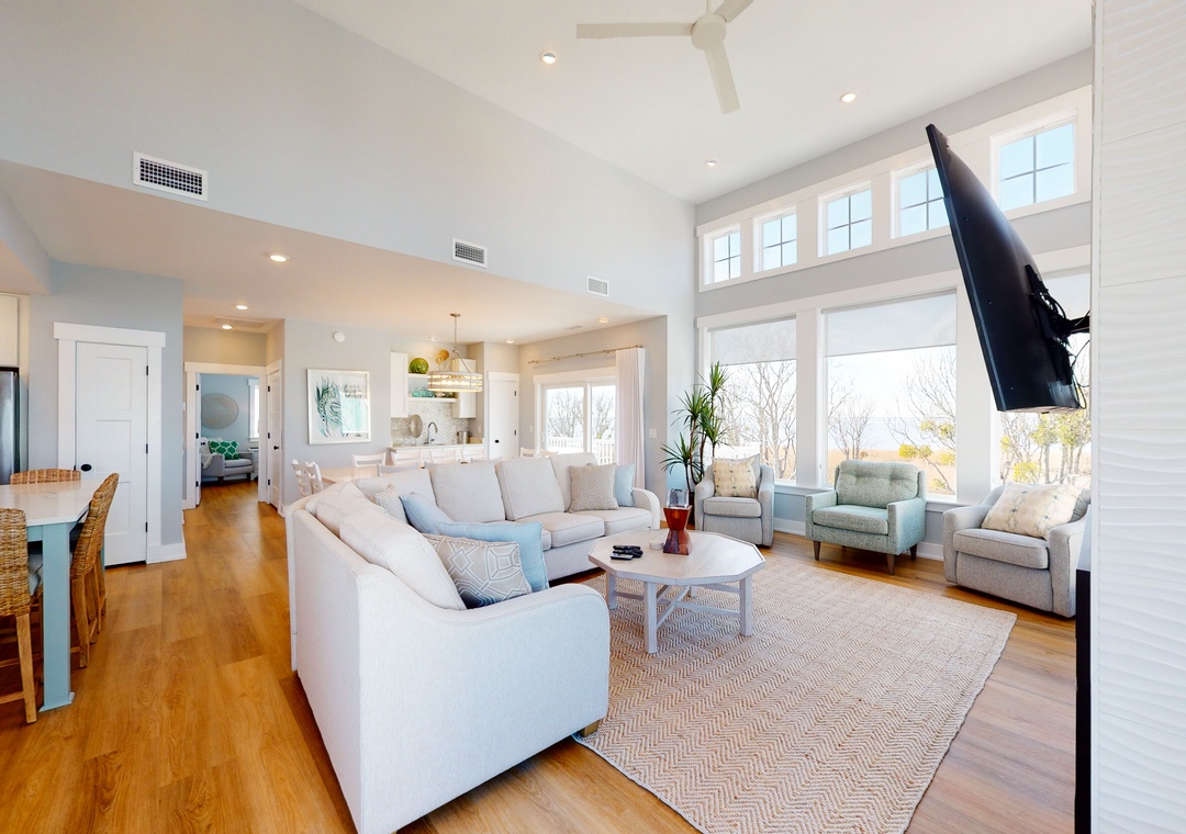 We love Carolina Breeze. It's got six large bedrooms and a bunkroom for four. It's perfect for our group of writers (and we love its huge dining room table where we create characters and situations and just have a geeky rollicking good time). The views of the sound are stunning, both morning and evening, and the kitchen is well-provisioned. Enjoy. We'll be renting it again.- Reviewed On: 9/23/2025