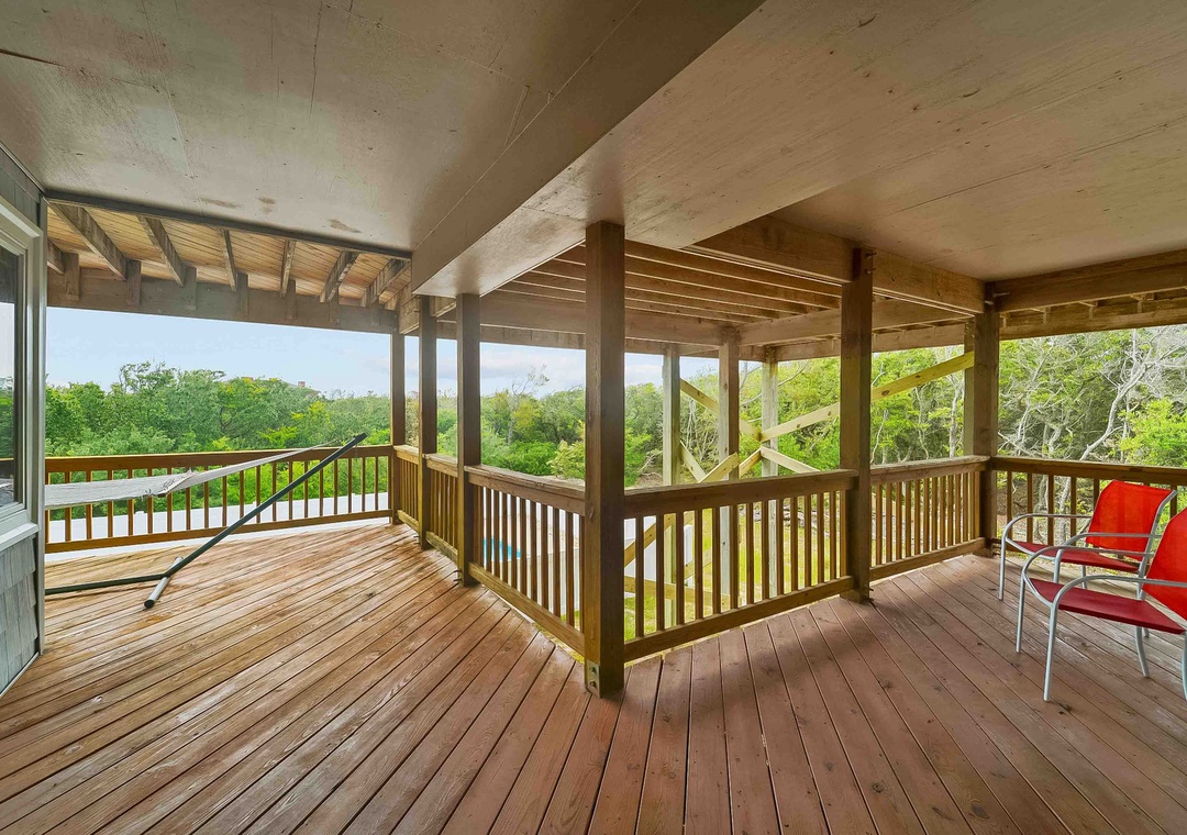 Inside you'll find a bright interior with lots of natural light, as well as a warm air of welcoming throughout the home. Make memories by eating home-cooked meals and playing board games around the formal dining table. The group's chef will love preparing meals and beach picnic snacks in the full kitchen, with stainless steel appliances and all the cupboard room you could ever need. All the bedrooms are comfortable, with ample space for personal effects, but the main bedroom has a lovely en suite bathroom with a soaking tub and walk-in shower. At the end of the day, relax on the wraparound deck and take in the unbeatable North Carolina sunset.