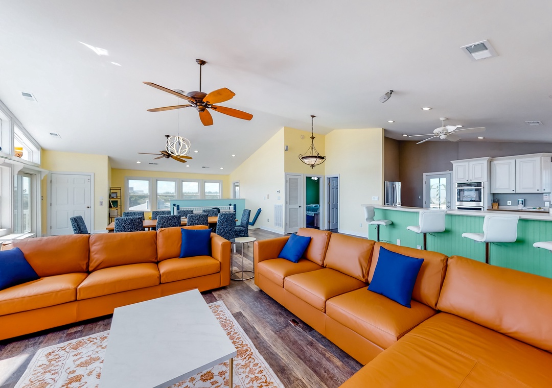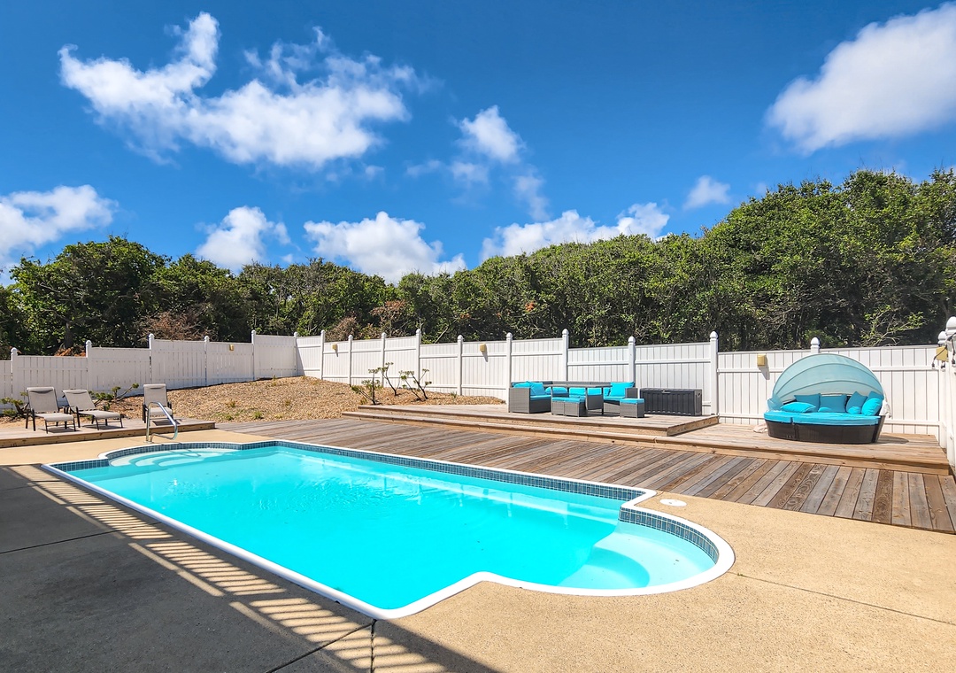 There is no need to wonder what it would be like to live mere steps from the crashing waves and sugar-white sand when you book a stay at Koast Enough. Located less than a mile from the main highway, within walking distance to trails, and of course beach access across the street, you will have no trouble finding a plethora of ways to use each day. Start each day on the furnished deck with a fresh cup of coffee in hand as you plan full days of coastal adventures and take in the fantastic views. When days heat up, the private pool and spacious backyard will be calling your name for endless tanning sessions or quick dips in the sparkling water.
