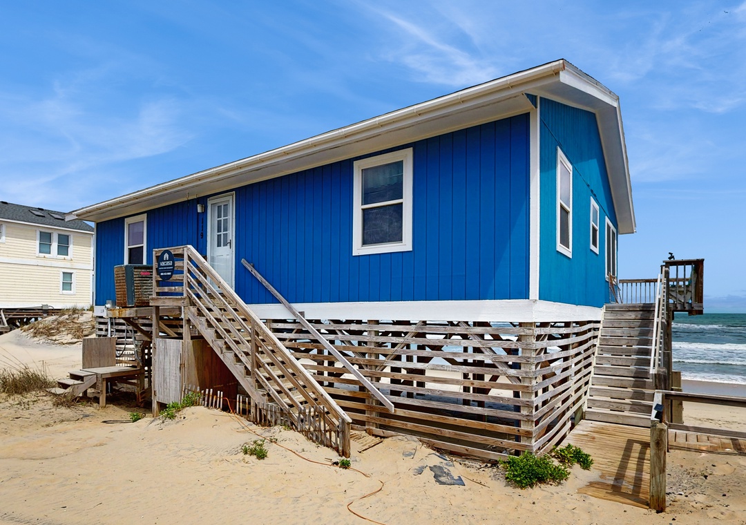 This location was incredible! Couldn’t have asked for a better spot for my family to spend our beach vacation. However, back steps weren’t able to be used, the bathtub didn’t plug and wasn’t able to be filled, there were unsecured cables under the house, and the back entrance to the house was extremely narrow for carrying belongings inside. The house was very clean and the beds were comfortable. Could use some outdoor furniture and chairs for the back deck. Overall, we loved this house and were so grateful to be so oceanfront!- Reviewed On: 8/31/2025