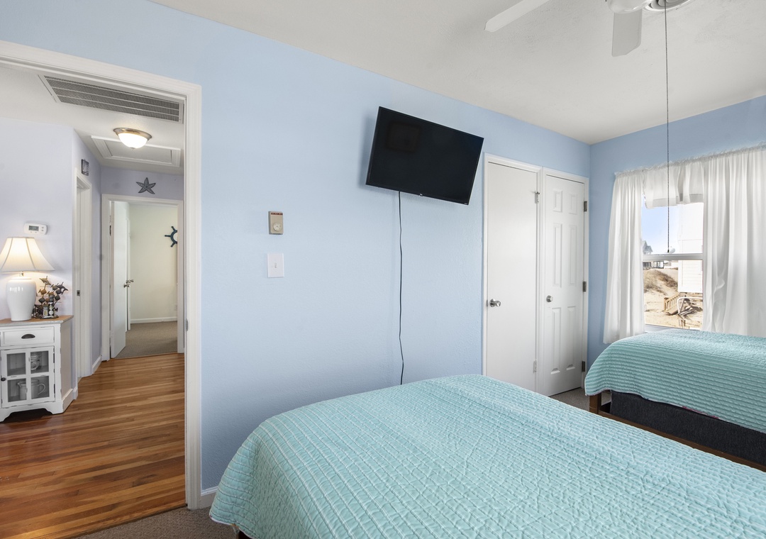 Thank you. Glad you loved the house, the location, and the screened windows — sounds like the ocean sounds made for a peaceful stay. Sorry the kitchen supplies, some beds, and the bunk-room TV weren’t up to expectations; I’ll share your feedback with our housekeeping and maintenance teams so they can restock supplies and evaluate upgrades. Thanks also for the note about the sandy driveway — we’ll pass that along for future guests. We appreciate you choosing Village Realty and would welcome you back.Village Realty staff