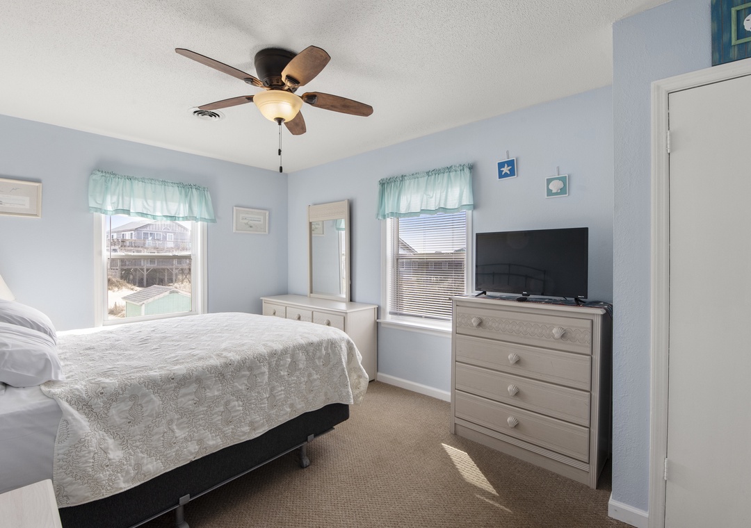 We loved this house!! It's so cute and has the perfect location to the beach! This house actually had screens in most of the windows which a lot of these house do not that we have stayed in. You could leave the windows open and hear the ocean all day and night! It was very peaceful here. I went with my mom and my two kids for three nights. We had plenty of room. You could comfortably fit probably 6-8 people in this house. For sure could squeeze 10-12 with the sleeper sofa but it would be tight. We loved the house! Kitchen could use some restocking & some bed upgrades but other than that it was wonderful! The bunk bed room was cool. My kid made a fort with blankets and loved it! The TV in the bunk room needs an upgrade. The other rooms were ok. The driveway was a little tricky because of the accumulation of sand. We did not have a 4 wheel drive vehicle so we didn't park all the way up on the driveway the first night we were there. A person cleared some of the driveway with a bobcat while we were staying so we were able to get all the way up the driveway the remainder of our stay. When leaving I got too close to the dune behind our house and temporarily got stuck so be careful/cautious of that if you do not have a 4 wheel drive vehicle. We loved this house and would definitely stay again!- Reviewed On: 12/4/2024