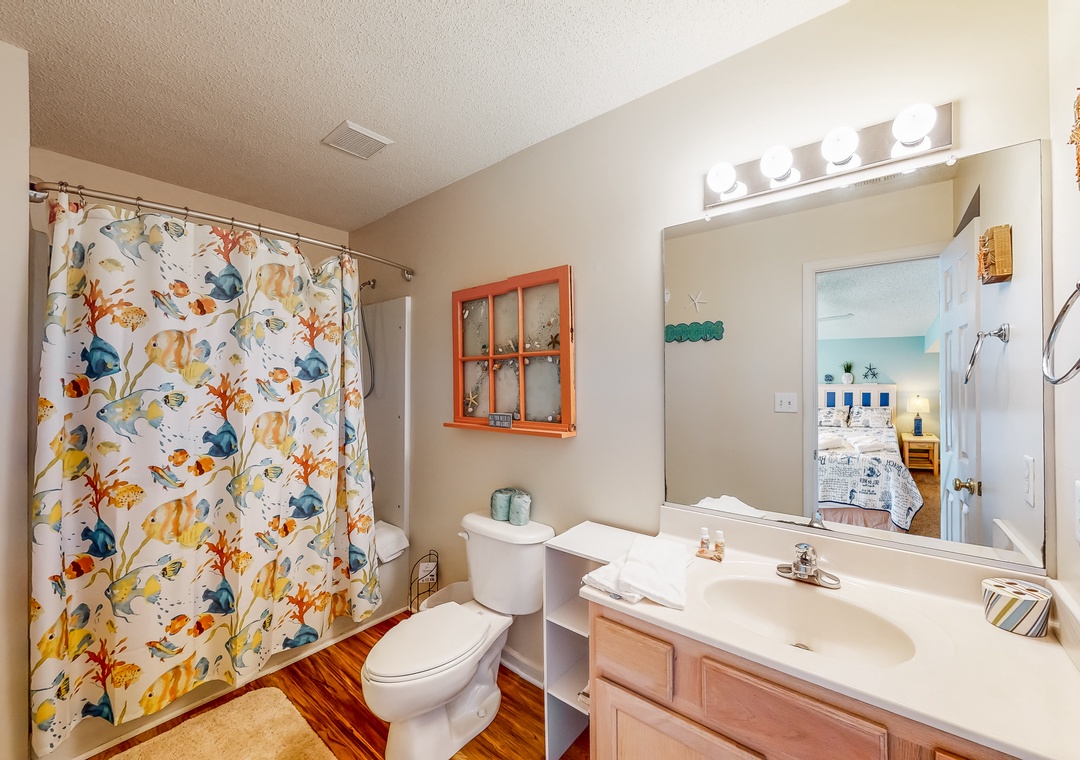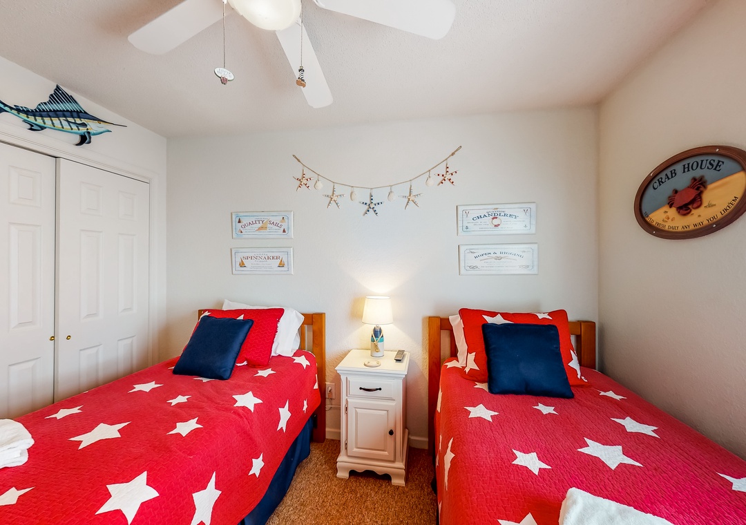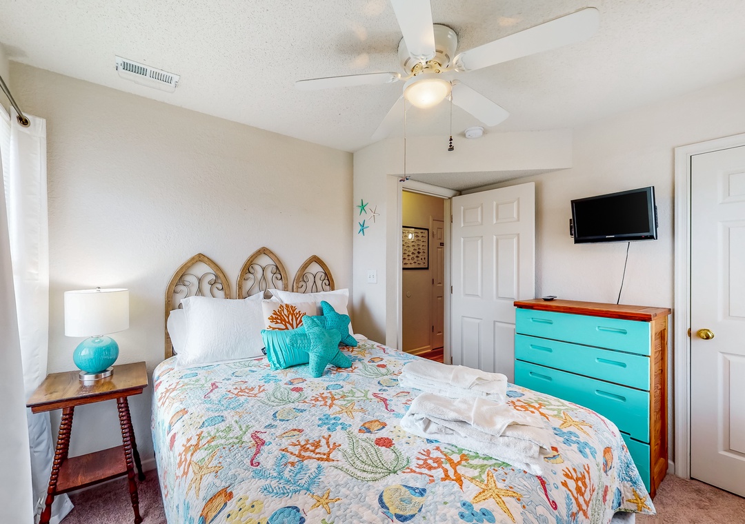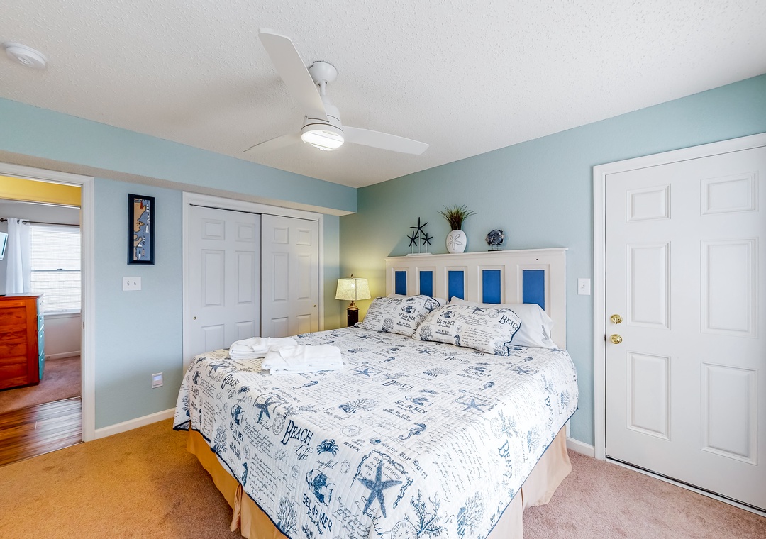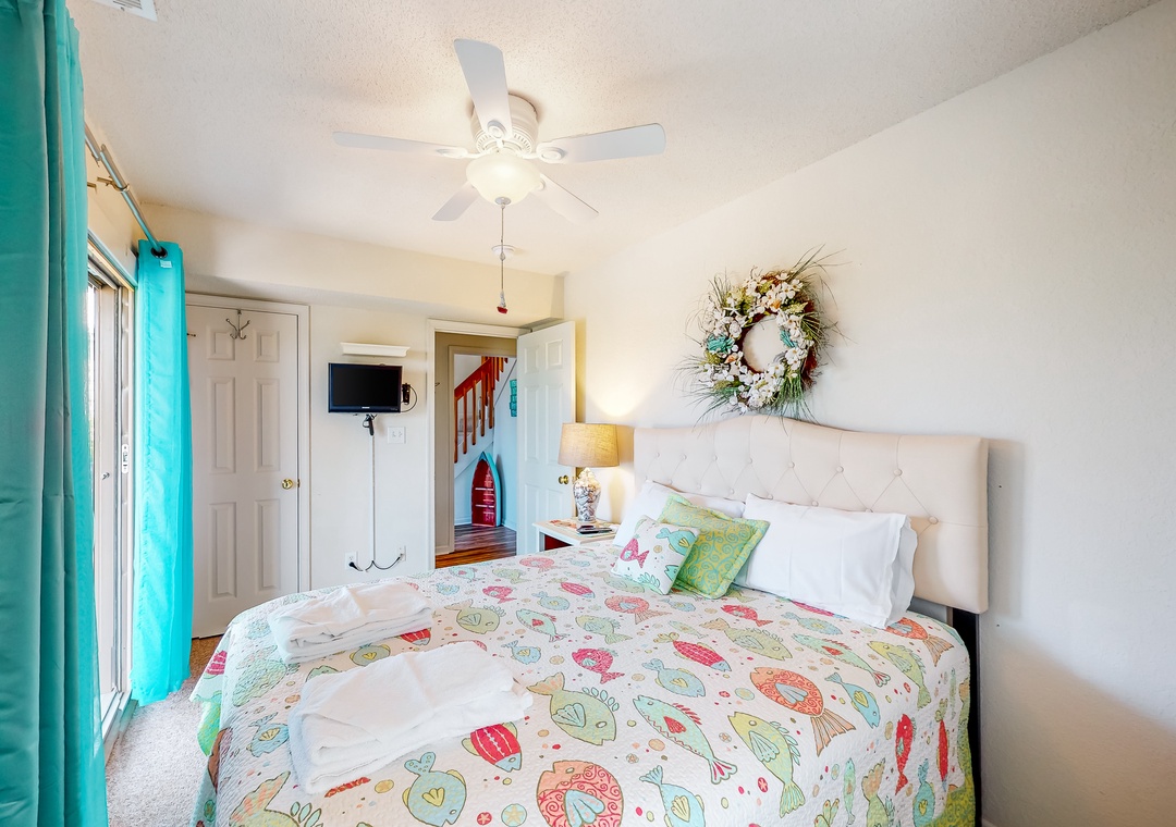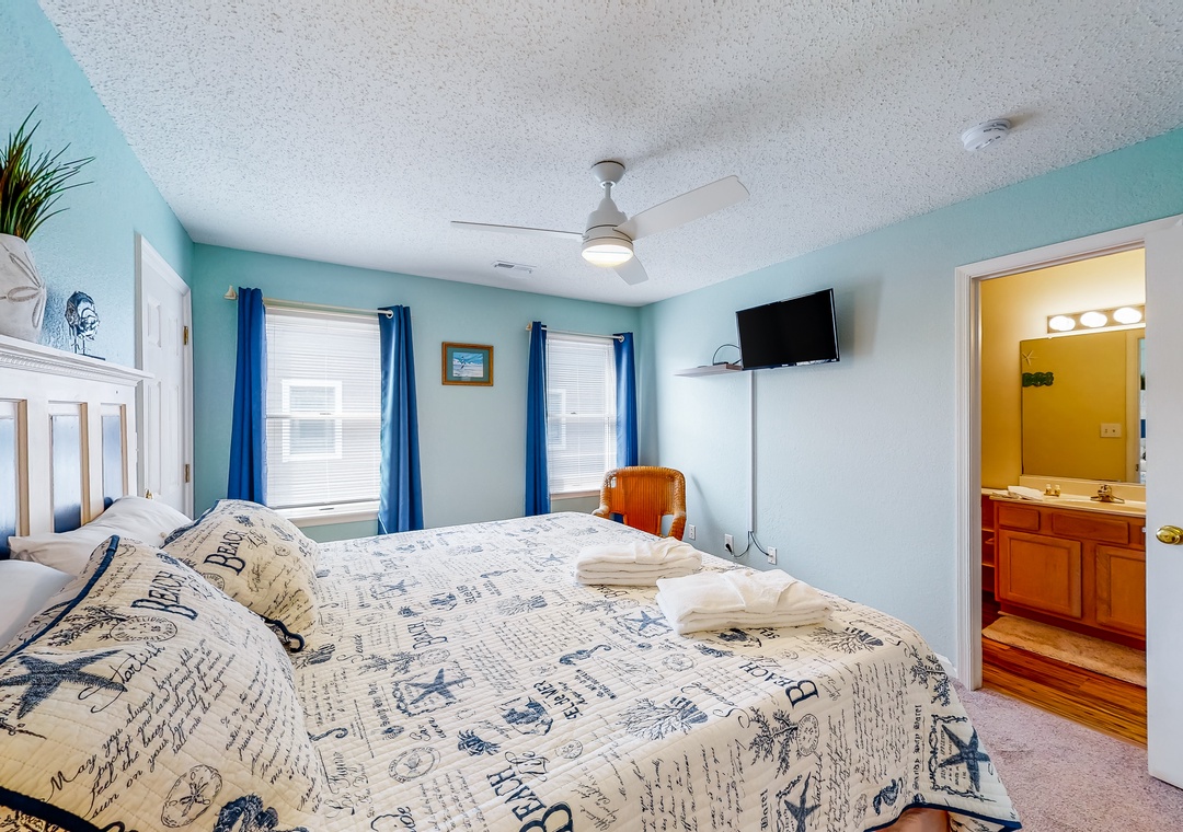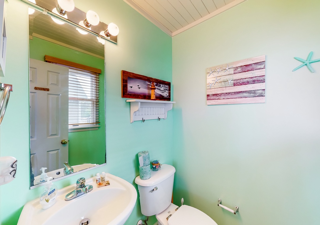 Inside, the fun won't end, as everyone will fall in love with the pops of beach-themed decor, vibrant colors, and spacious layout. Hop into the full kitchen when everyone works up an appetite, and gather for meals at the dining table or outside as you look out to the calm waters of the sound. Don't worry about being disconnected either because the free WiFi will keep everyone entertained and up to date with emails or remote work if need be.