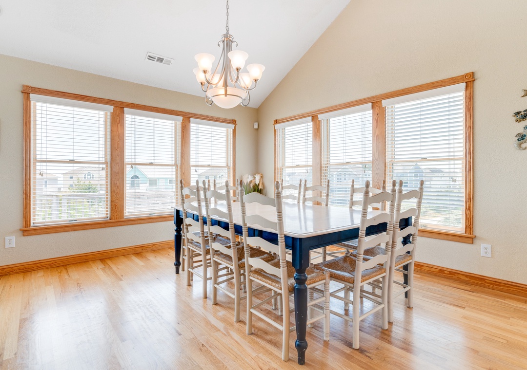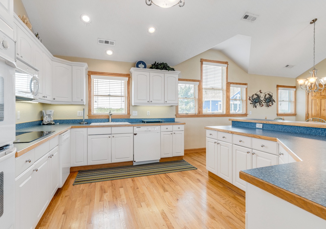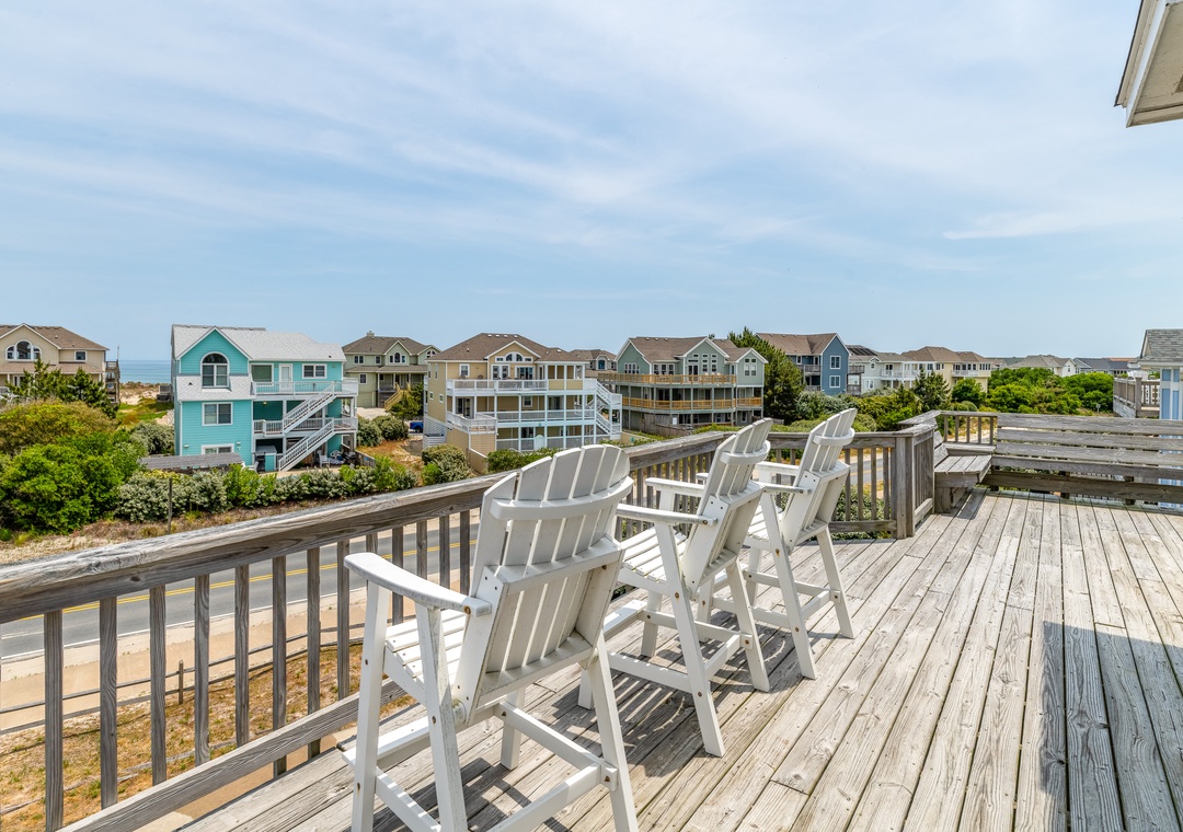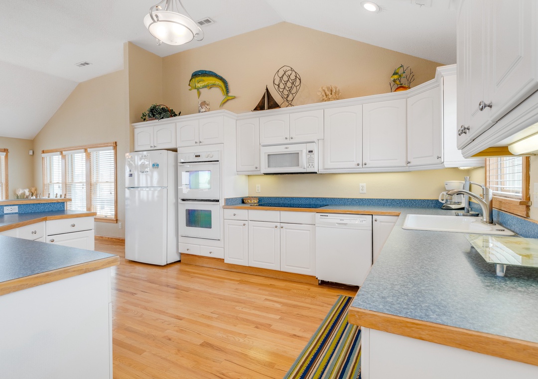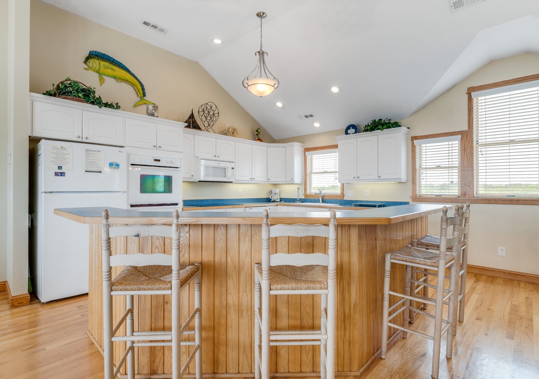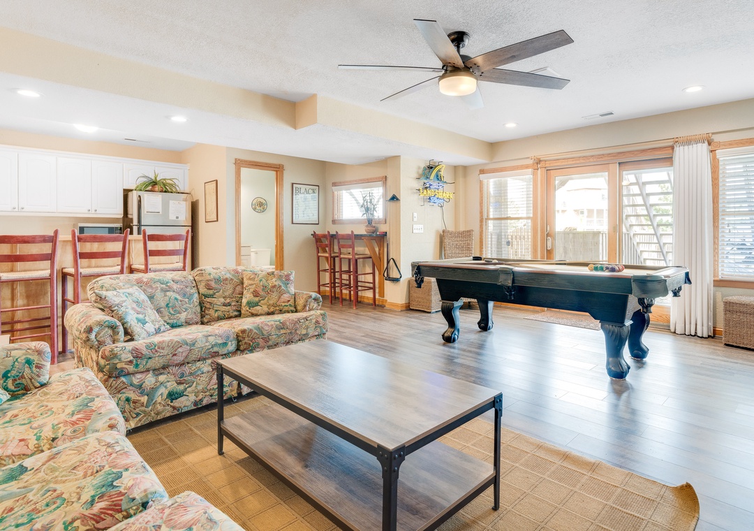 The ground level will be the hub for entertaining the younger guests, as it features a kitchenette with a full-size fridge, dishwasher, microwave, coffee maker, and sink for whipping up snacks and beverages, and the game room a pool table and TV for endless entertainment! This floor is also home to two bedrooms and a full bath. Make your way up to the second floor and you will find four more bedrooms, each with its own bathroom. Plus, you will have deck access for sipping a cold beverage in the salty breeze. The third level features a wonderfully open floorplan that will allow everyone to mingle with ease! The fully equipped kitchen boasts two dishwashers, stainless steel appliances, a five-burner stove, and a double oven for easy meal prep each day. When you want to settle down each evening, the colors of the sunset over the water will be to die for and everyone can gather for a movie night in the great room until the stars come out.