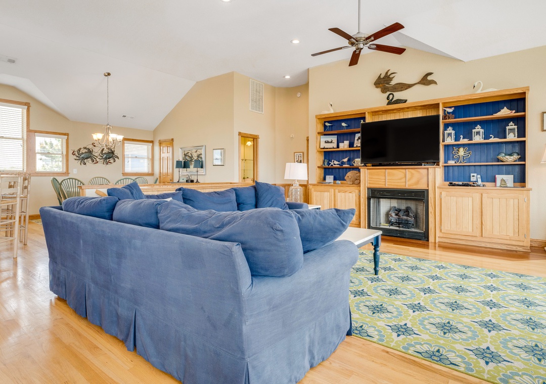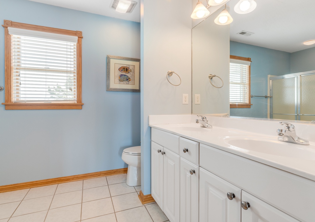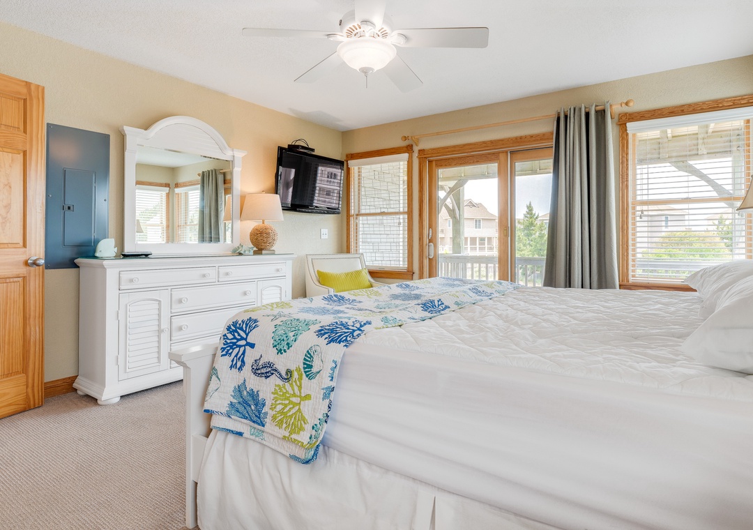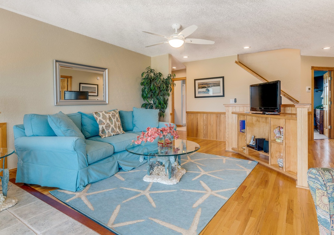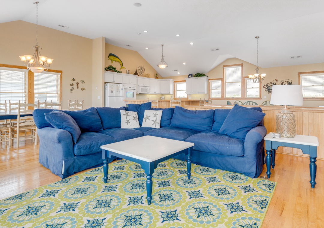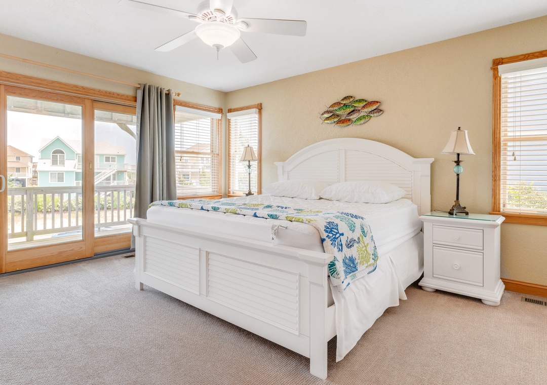 The ground level will be the hub for entertaining the younger guests, as it features a kitchenette with a full-size fridge, dishwasher, microwave, coffee maker, and sink for whipping up snacks and beverages, and the game room a pool table and TV for endless entertainment! This floor is also home to two bedrooms and a full bath. Make your way up to the second floor and you will find four more bedrooms, each with its own bathroom. Plus, you will have deck access for sipping a cold beverage in the salty breeze. The third level features a wonderfully open floorplan that will allow everyone to mingle with ease! The fully equipped kitchen boasts two dishwashers, stainless steel appliances, a five-burner stove, and a double oven for easy meal prep each day. When you want to settle down each evening, the colors of the sunset over the water will be to die for and everyone can gather for a movie night in the great room until the stars come out.