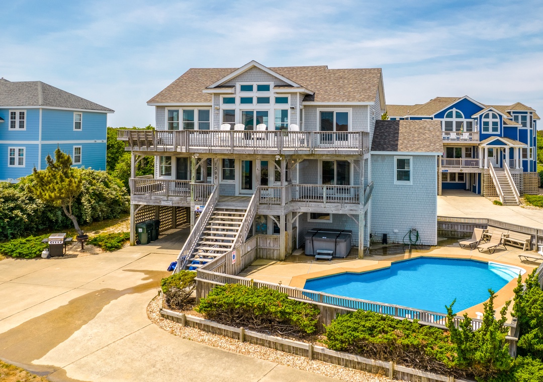 Find yourself just 300 feet from the beach when you call Pamela's home with loved ones! Boasting direct beach access, a large private pool and hot tub, and three spacious floors all offering their own living areas, this retreat will be perfect for larger groups to enjoy. Don't forget to bring the furry member of the family along as well, as this home is dog-friendly!