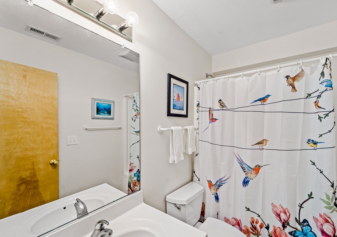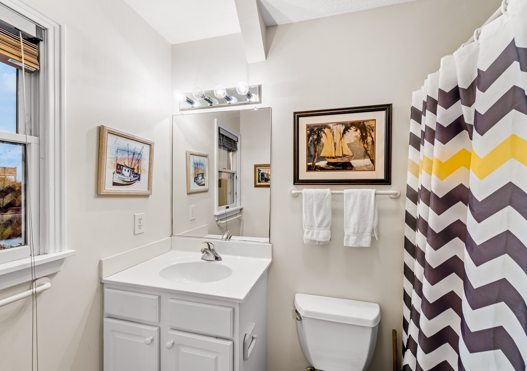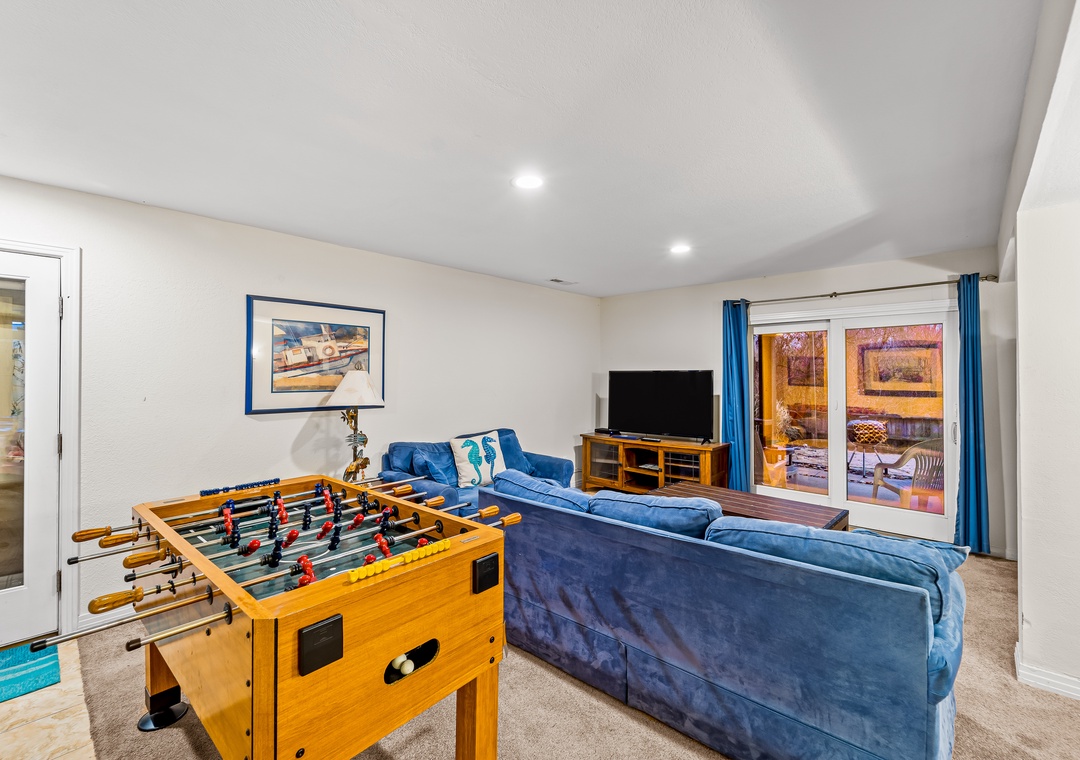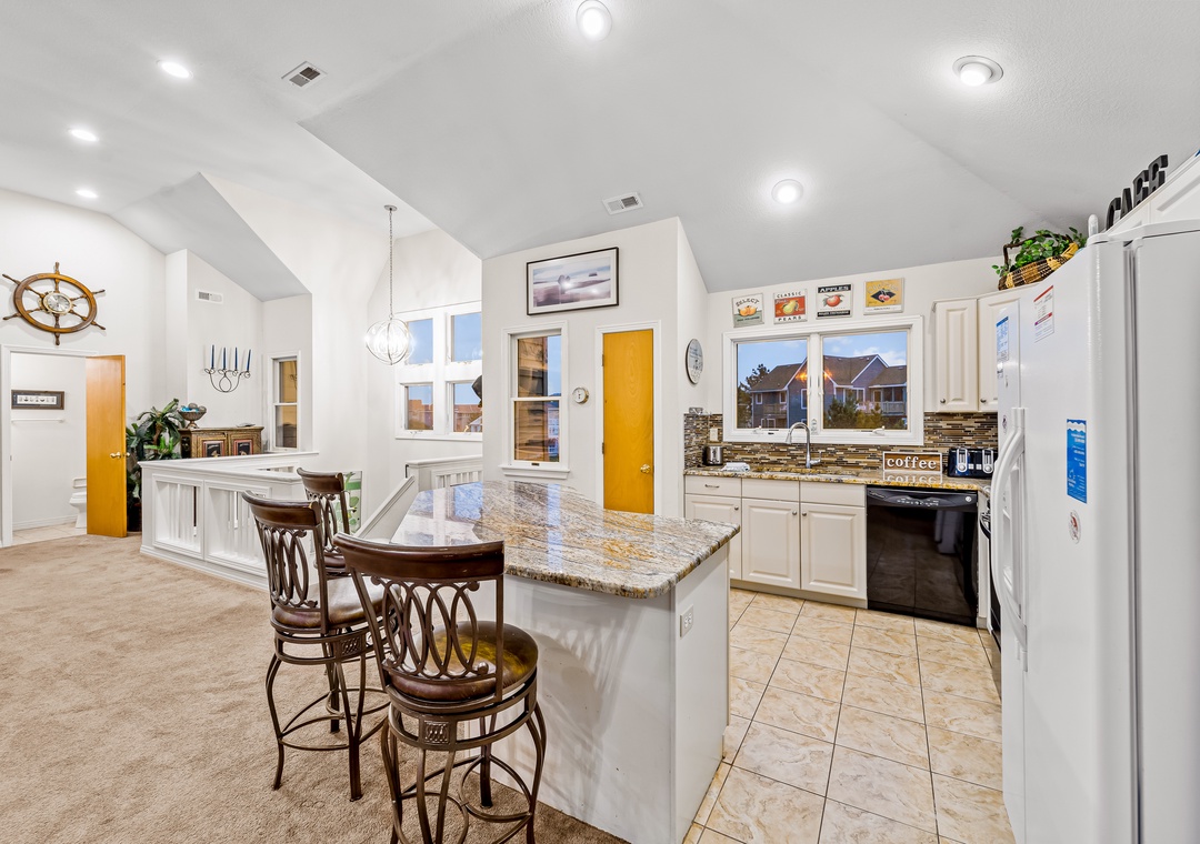 Inside, challenge guests to a few rounds of foosball in the ground-floor game room, enjoy some quiet reading or TV time in the second-floor den, or gather for family movie nights in the upstairs great room. The gorgeous full kitchen comes equipped with all the counter space and major appliances you'll need to handle family-style meal prep with ease. There's room for everybody between the kitchen bar and dining table, and for a special treat, the enclosed porch extension comes furnished with a table of its own for breezy semi-open dining. Added perks include a spare full-size fridge in the game room and a working (seasonal) gas fireplace in the great room. Home essentials include central air-conditioning, free WiFi, and a private washer/dryer.