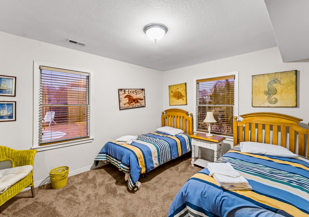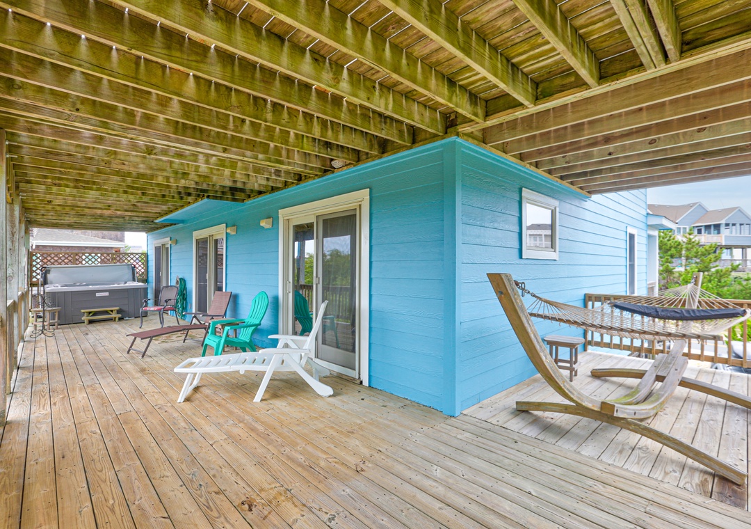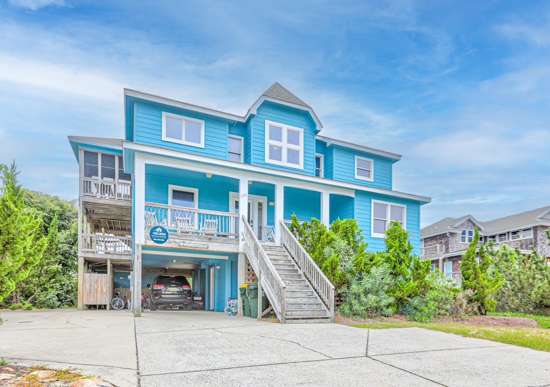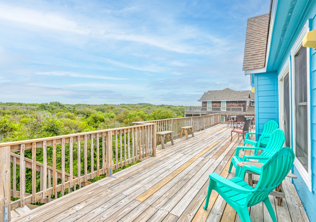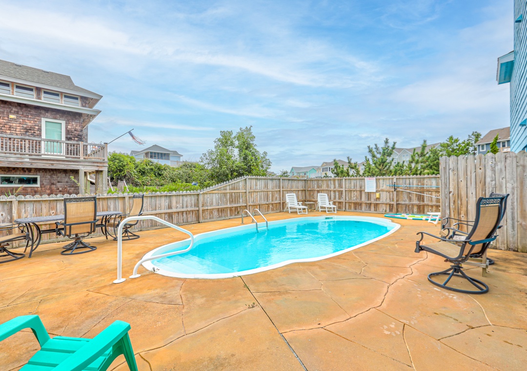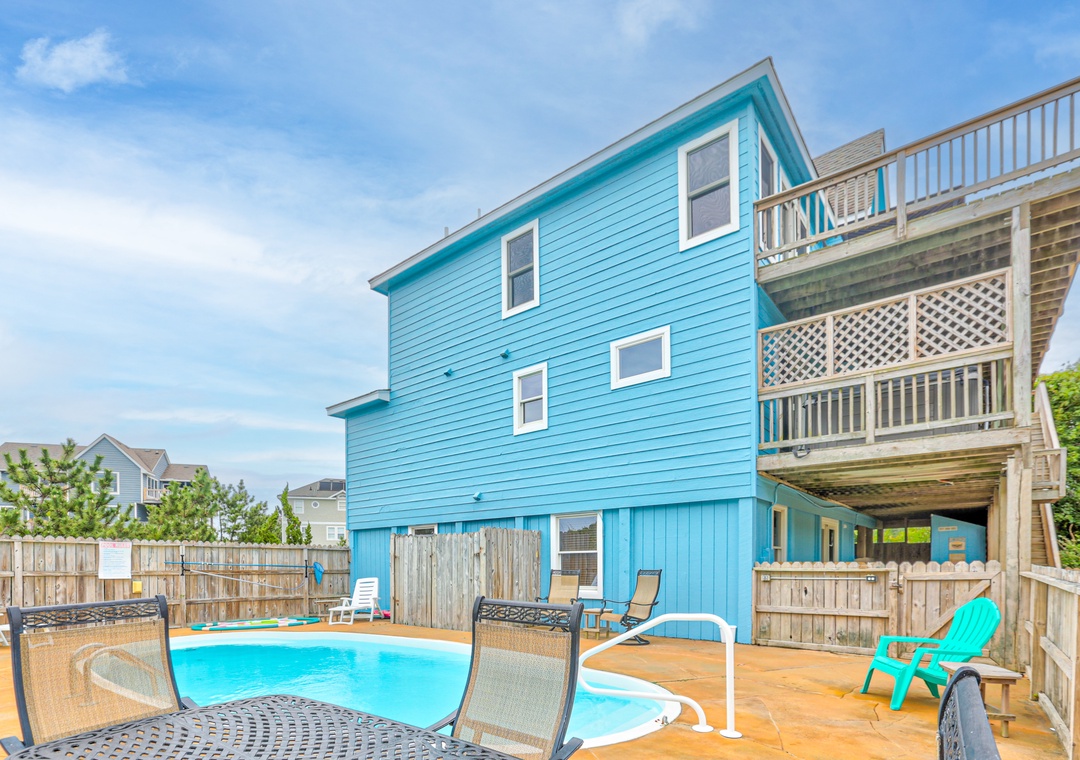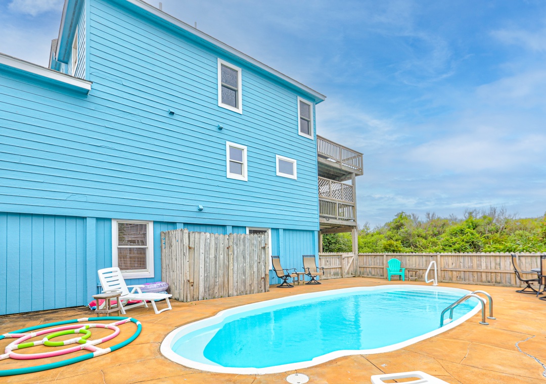 Indulge in summer delight all year long at this spacious beach house! Complete with a private pool and furnished outdoor areas, this home offers supreme convenience just three lots away from the beach. A community pool and tennis courts are also available on a seasonal and weather-dependent basis. Little ones in the group can enjoy the playground, while fitness center access can also be arranged for an additional fee with daily or weekly pass options available for both individuals and the whole household. Bordering the Currituck Banks Preserve, you'll be up close and personal with natural Outer Banks beauty while also enjoying backyard privacy with no neighbors behind the home. The nearby Maritime Forest Trail Head offers a boardwalk stroll beneath the preserve's canopy and scenic views of Raccoon Bay. Be sure to book one of the local tours for a chance to see the iconic Corolla Wild Horses.