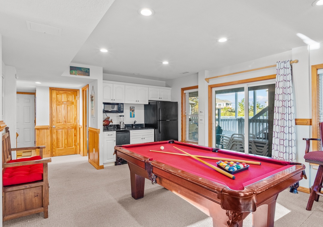 The home's pristine interior is a model of modern vacation comfort and is made up of seven bedrooms, seven full bathrooms, and two half bathrooms. The game room comes furnished for friendly competition and happy hour lounging with features including a pool table and wet bar equipped with a full-size fridge, a blender, a microwave, and a dishwasher. Multiple decks allow for leisurely outdoor gatherings, while separate living rooms offer flexibility for indoor occasions. The kitchen comes equipped with an impressive suite of stainless steel appliances including double dishwashers for ultimate family meal planning and easy cleanup. A gas grill is equipped on the main-floor deck for cooking up fresh seafood feasts.