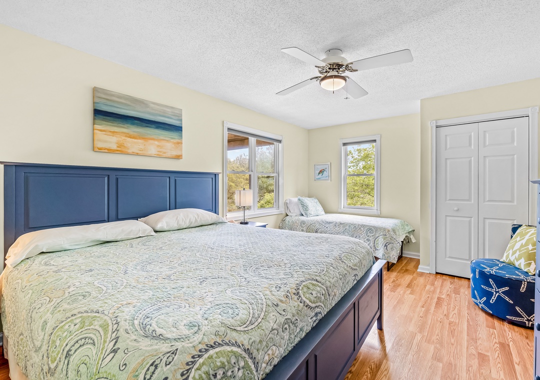 On the second floor, three king bedrooms, two full baths, and laundry facilities provide ample space for guests to unwind. The ground level offers a twin bedroom, full bath, and storage closet. Outside, enjoy the recently added private pool, hot tub, and direct access to the community path leading to the oceanfront access. Take advantage of the community fitness center, racquet and pickleball courts, playground, and easy access to the beach just steps away.