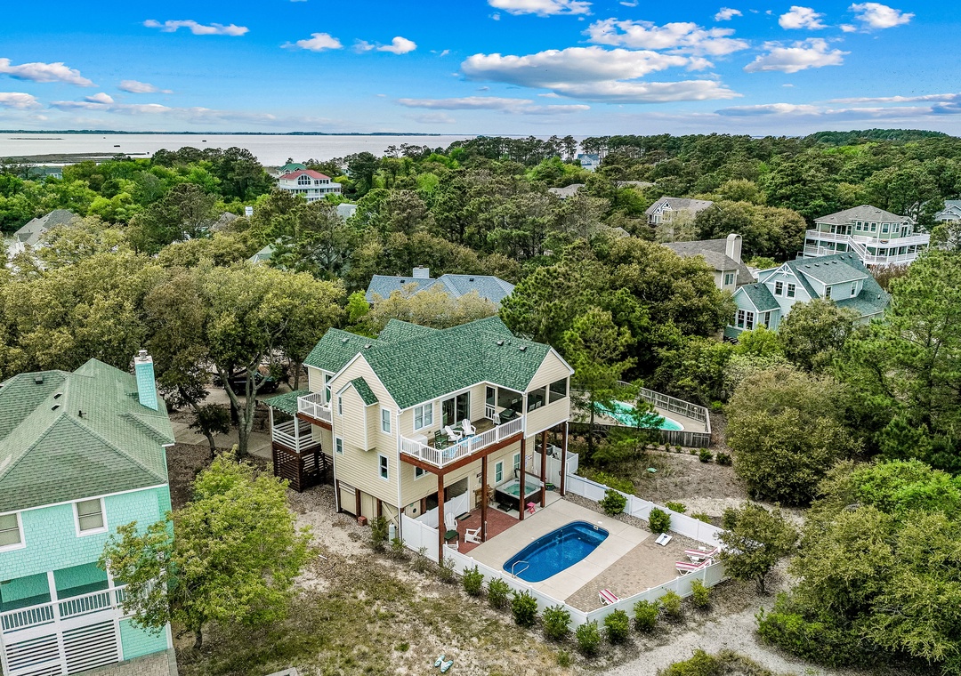 Escape to the charming coastal community of Corolla, and experience a luxurious retreat at this impeccably maintained 5-bedroom, 4-bath house. Nestled in the peaceful Villages at Ocean Hill, this soundside oasis offers a perfect blend of comfort, convenience, and resort-style amenities.