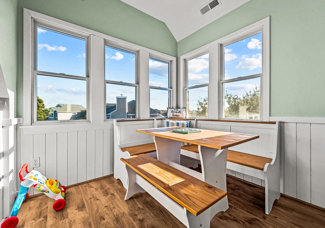 Families with pets and young children will appreciate that this house is pet-friendly and equipped with amenities such as a large dog crate, booster seat, high chair, pack-and-play, bed rails, kid-friendly dishes, and lots of toys and games, including an Infinity Game table. The ship's watch offers a view of the iconic Currituck lighthouse, adding to the charm of this coastal retreat.