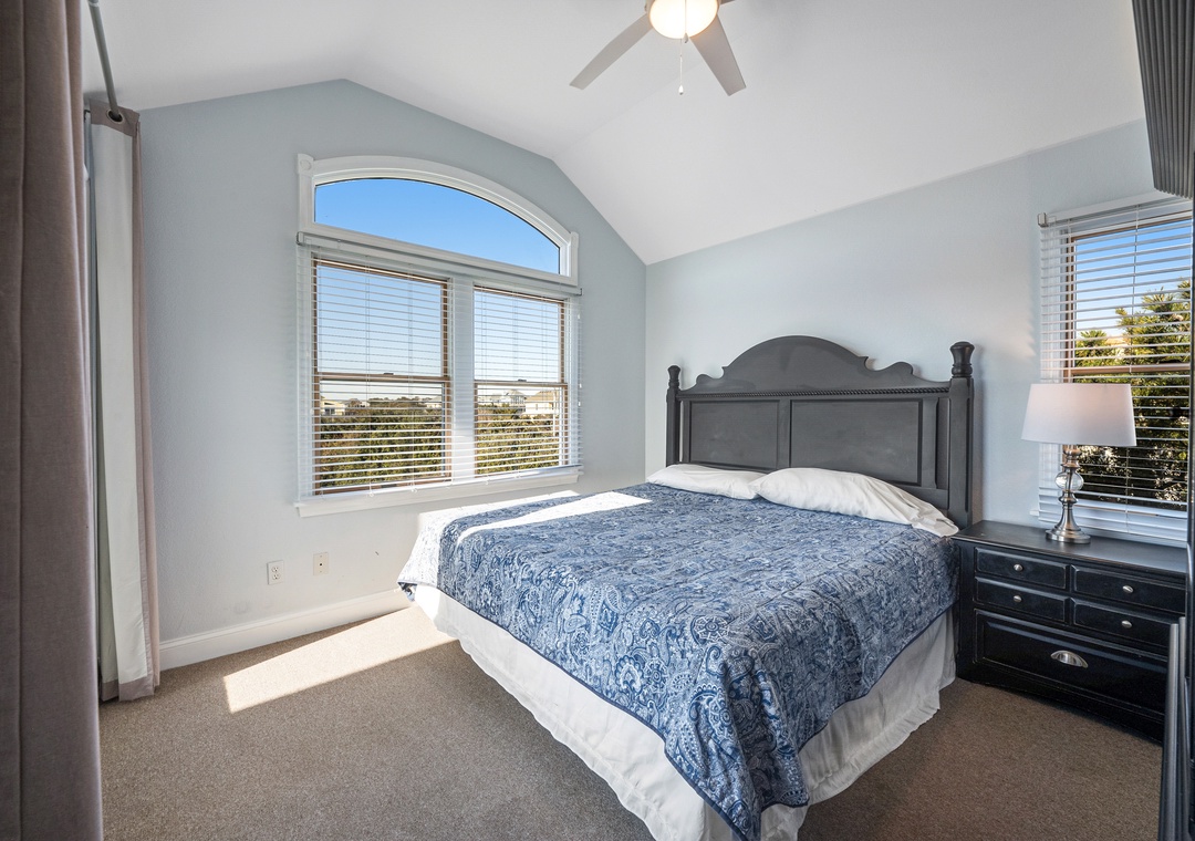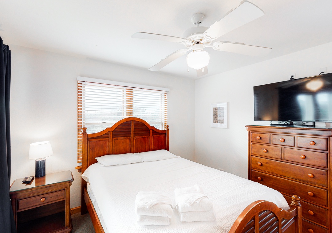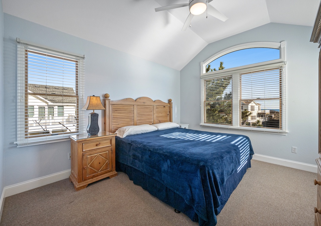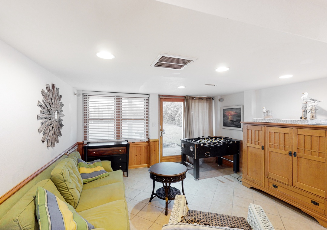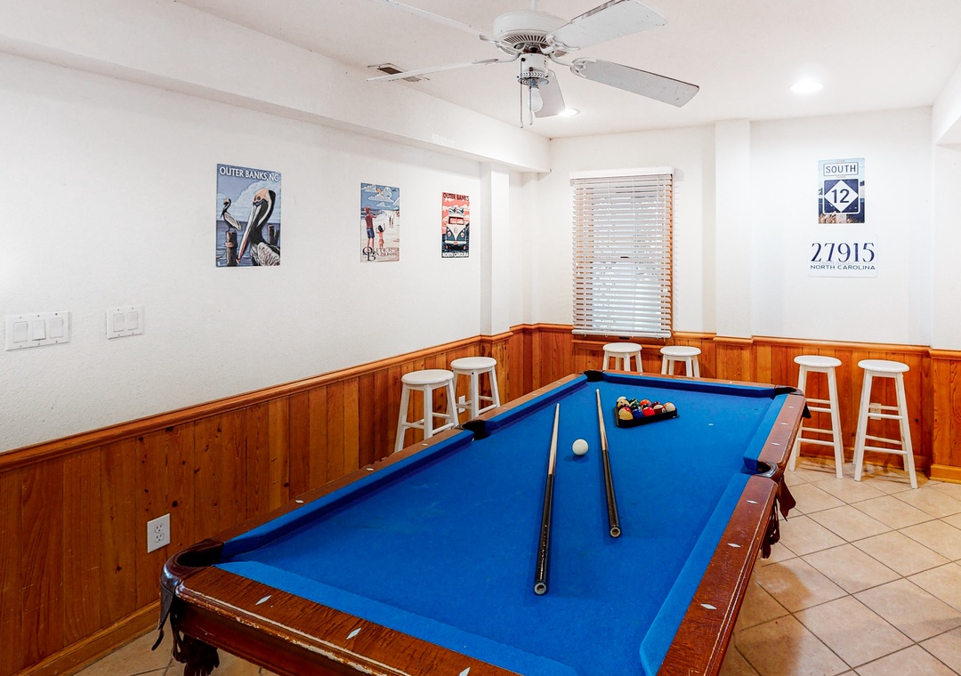 Ground Level: There is a Queen room, a full hall bath and main bedroom with 2 Singles. In the game room there is a pool table, a full refrigerator and a comfortably furnished sitting area with TV. These areas are accessible to the large yard and swimming pool.