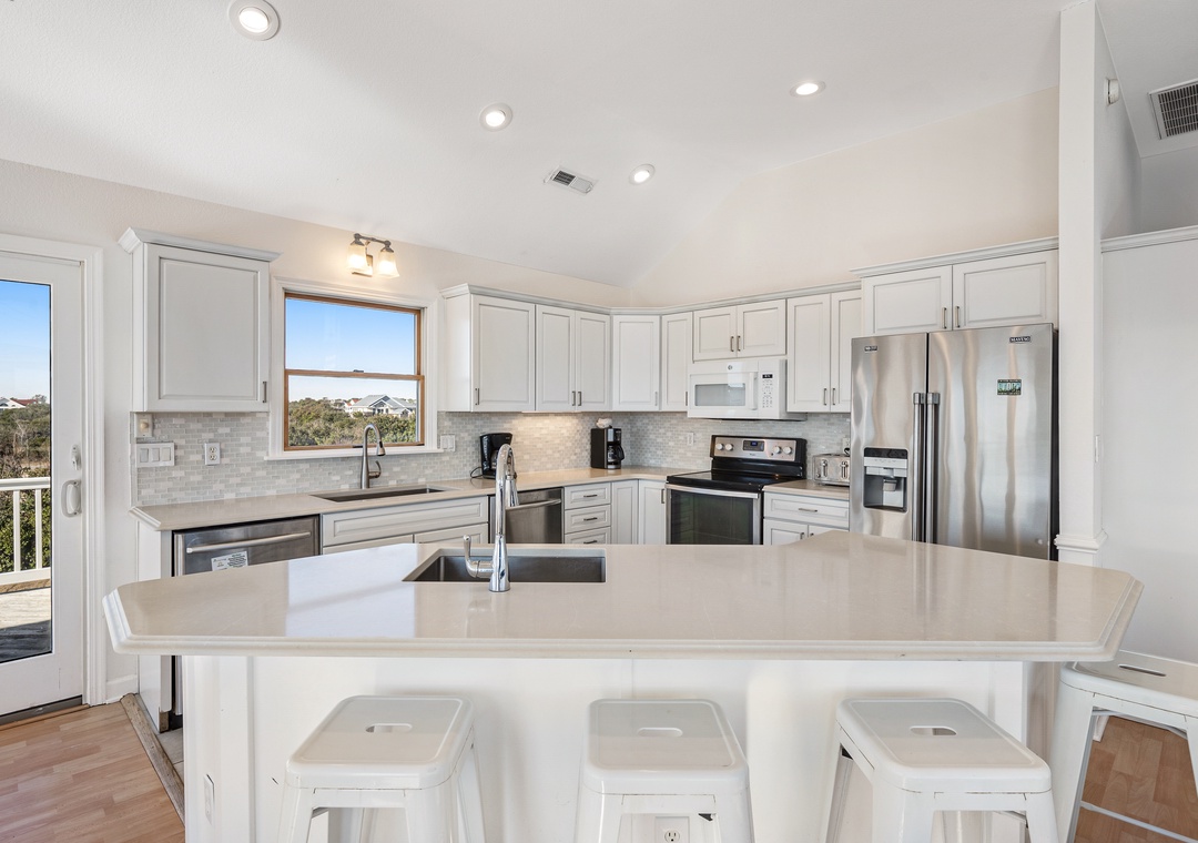 We enjoyed our week in the Seas the Day house. It was spacious enough for all of our large family to spend time together and also to have privacy. We truly appreciated the open kitchen and two sinks, dishwashers and the double laundry. Quite helpful! The close proximity to the beach was perfect! I would never tire from the views from the living room and dining room windows. We would definitely stay again. The only things I would mention: the home needs a broom for quick tidy ups. Also the chairs in the dining room are in need of replacement. They are in rough shape.- Reviewed On: 1/5/2026