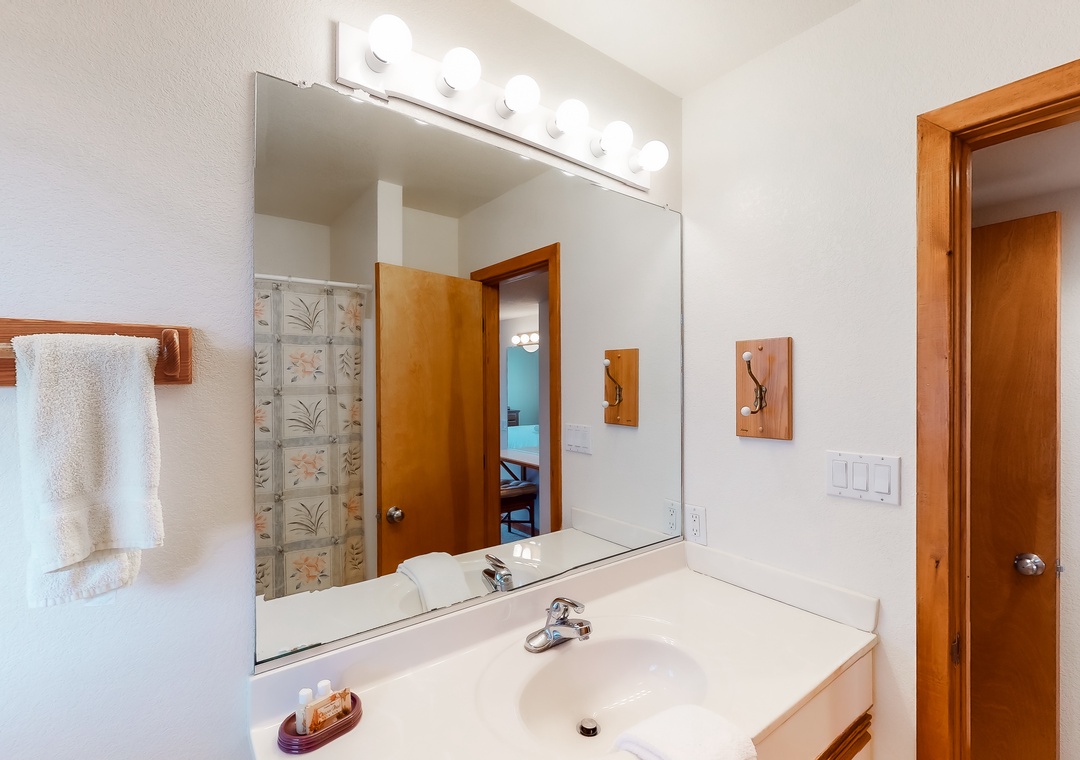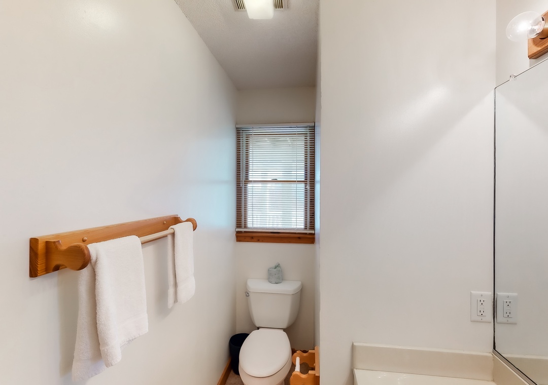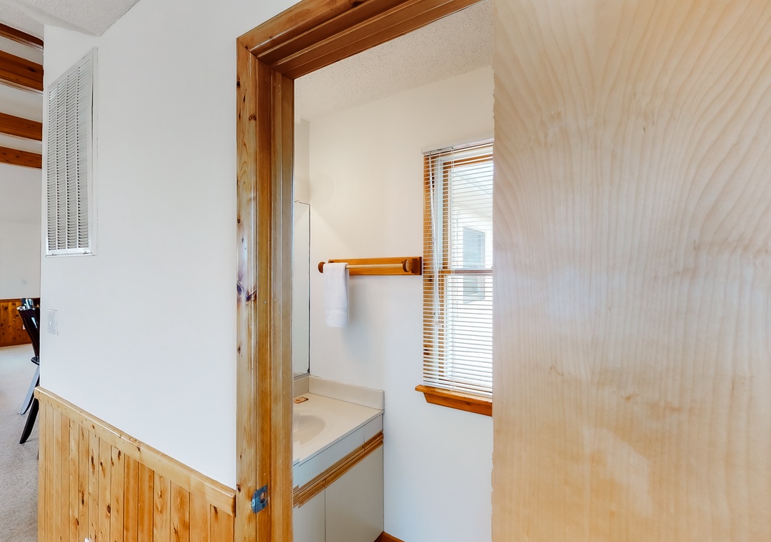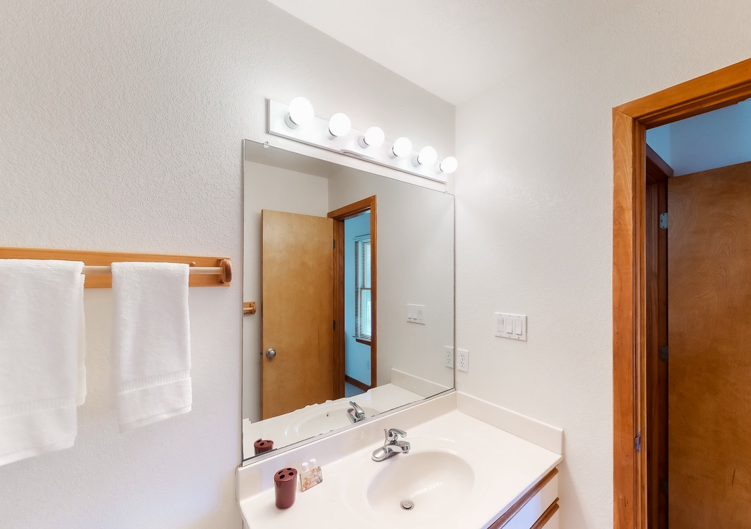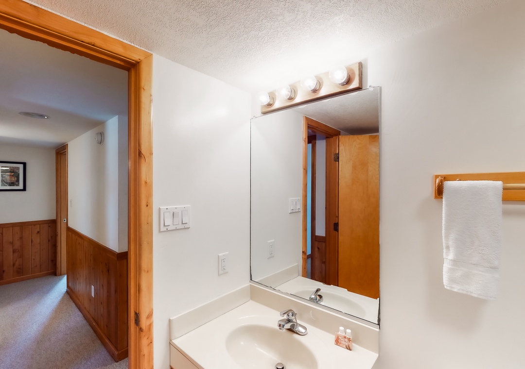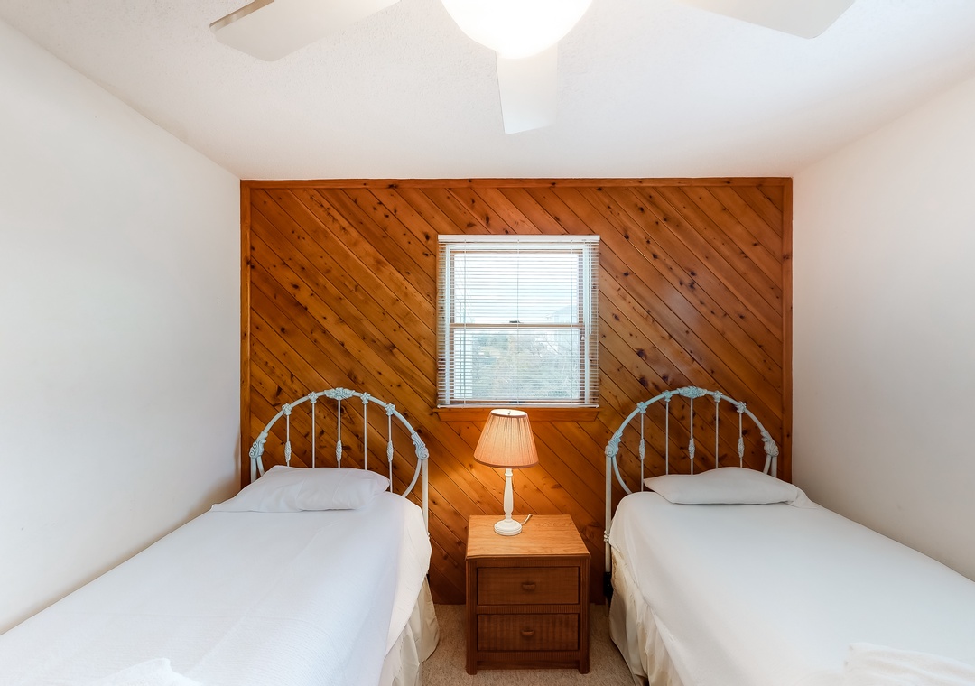 Mid Level: Features a private den with a TV. There is one shared full bathroom on this level, one bedroom outfitted with two twin beds, a primary bedroom with a bunk set and two twin beds, a queen primary bedroom, and a primary bedroom.