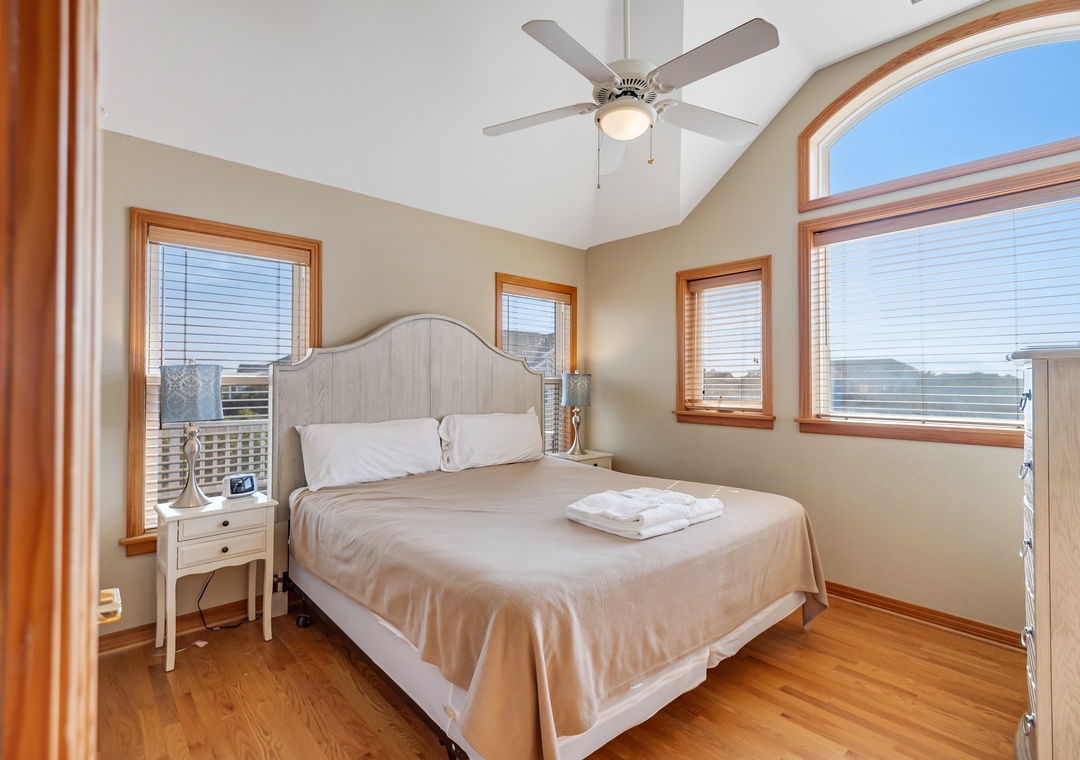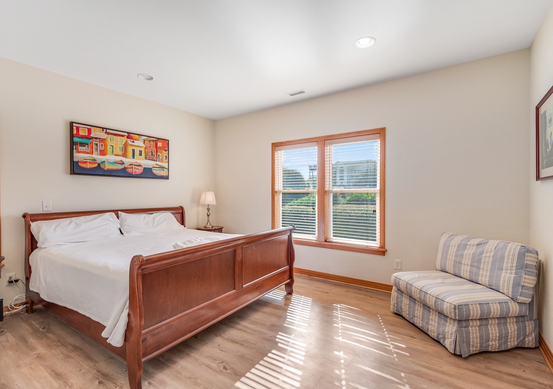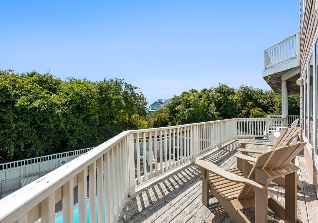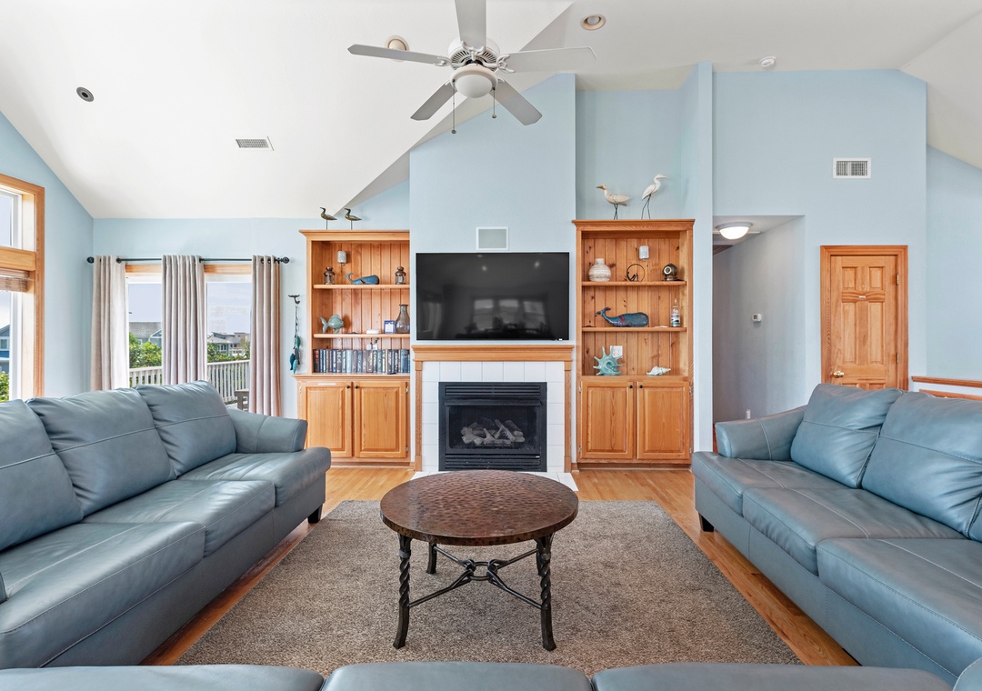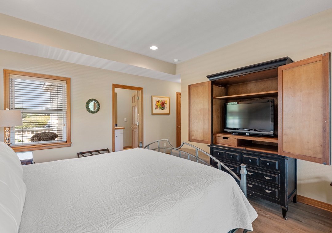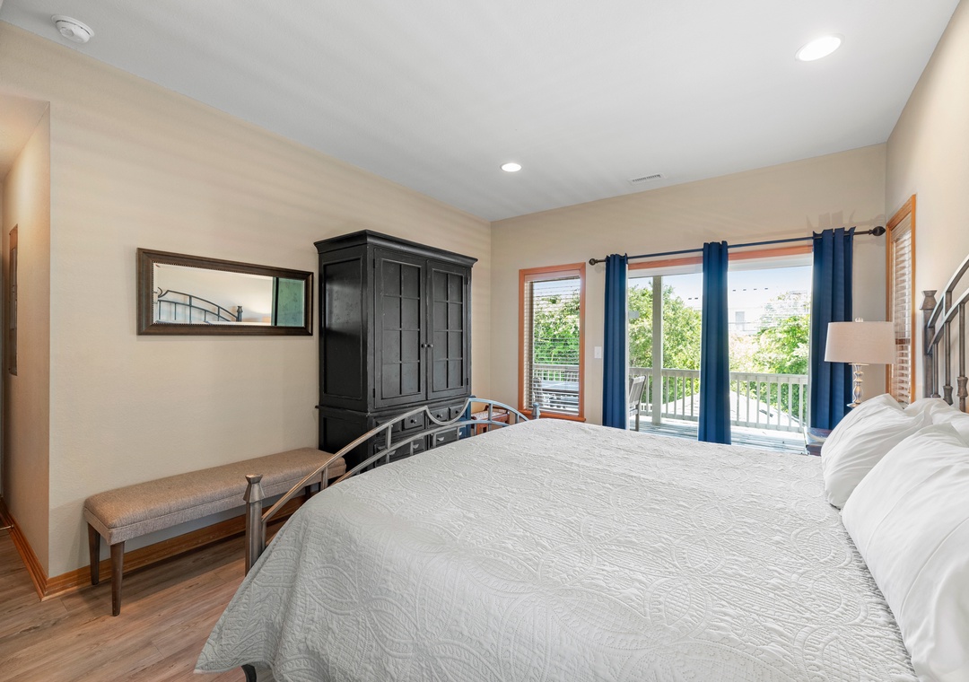 Step inside and be greeted by beautifully curated furnishings and spacious interiors that invite you to unwind. With seven king ensuite bedrooms, one queen ensuite bedroom with a wheelchair-accessible shower, an ensuite bedroom with two pyramid bunk beds, and an extra room with one pyramid bunk, everyone will find their perfect place to rest. The top floor boasts a sun-drenched open-concept living area with a gourmet kitchen, a dining table that seats 16, and a stylish great room with leather couches, a gas fireplace, and a 50” flat-screen TV. Step out onto the wraparound deck to enjoy ocean breezes from multiple seating areas.