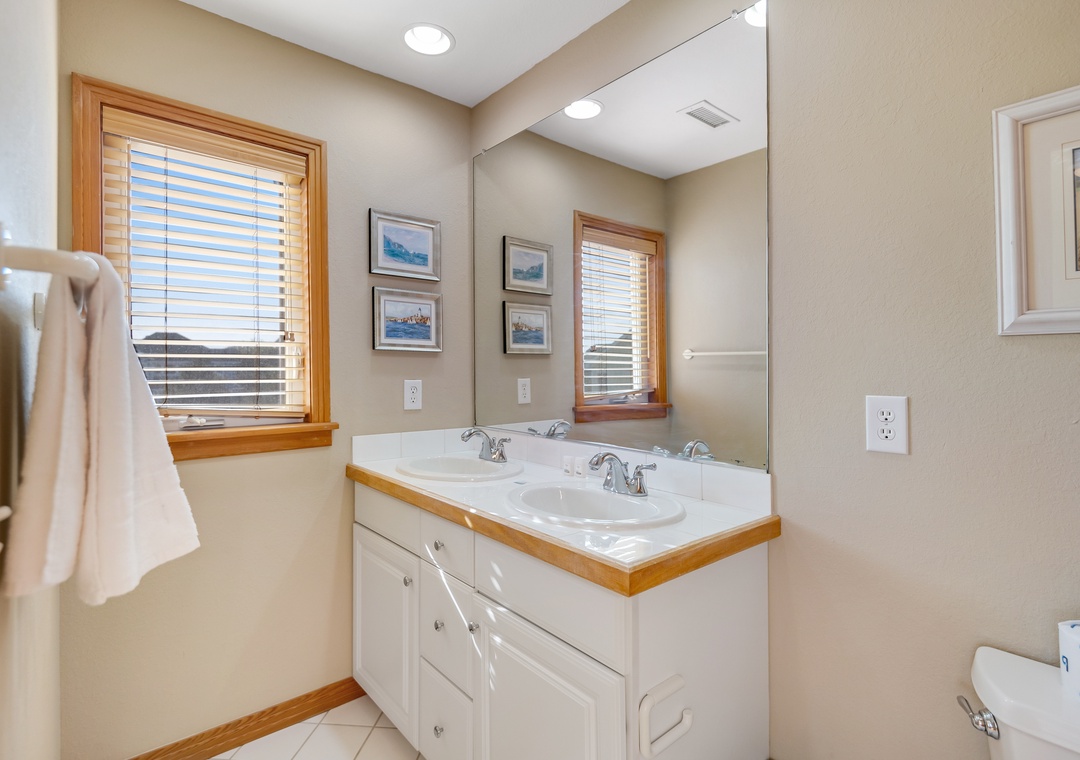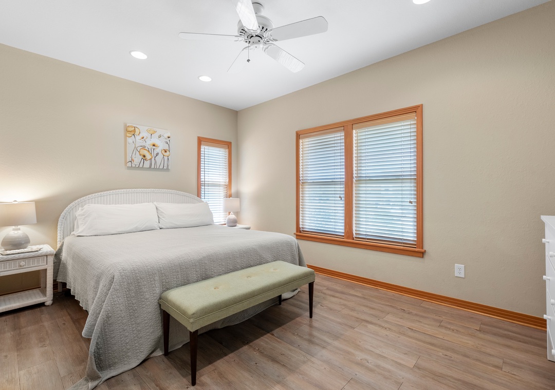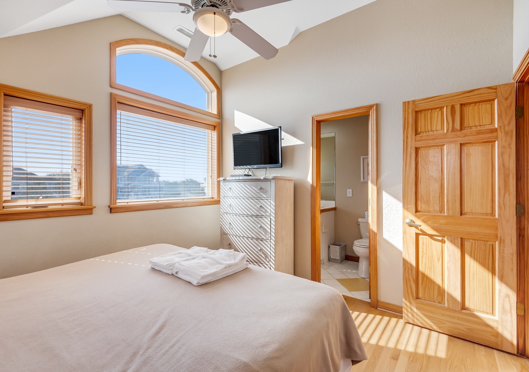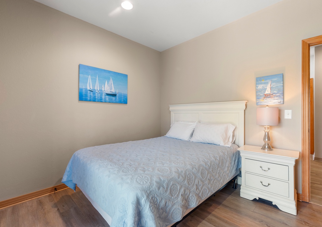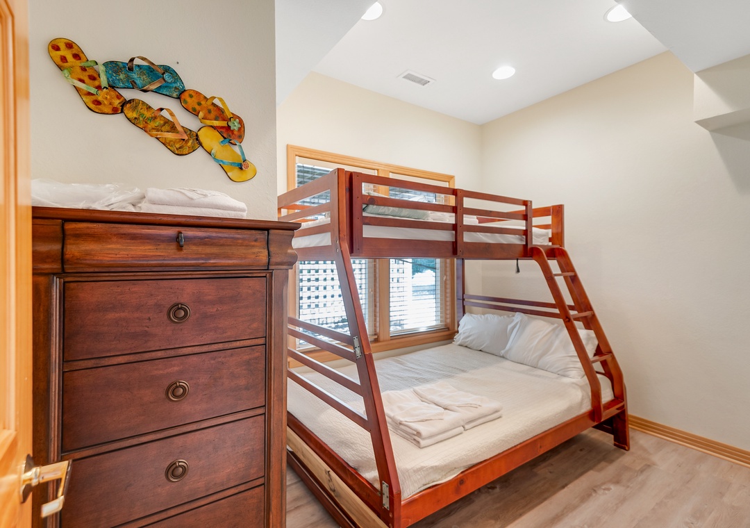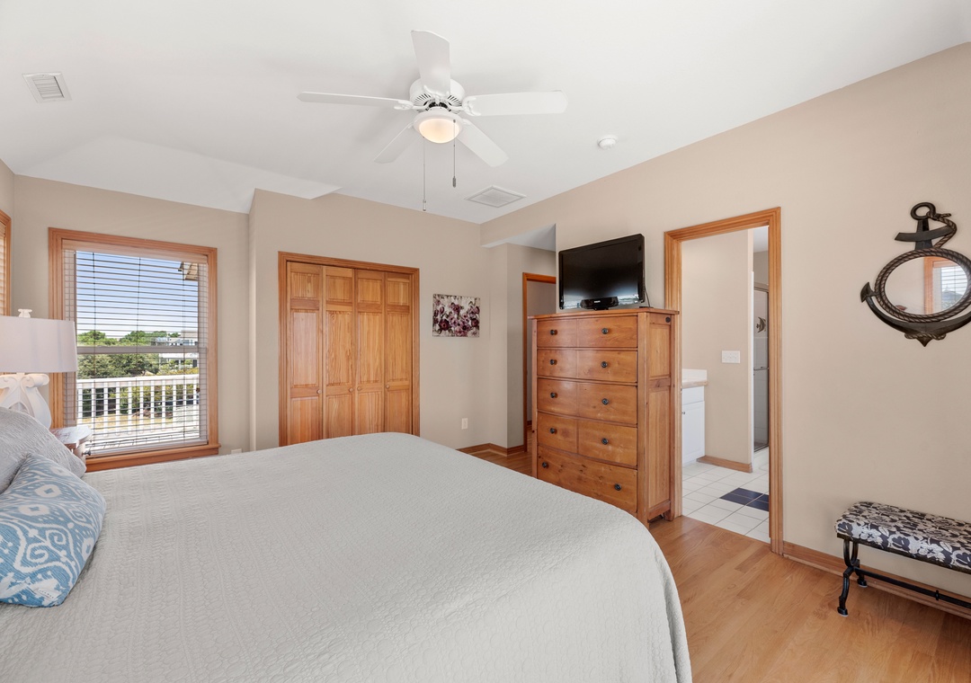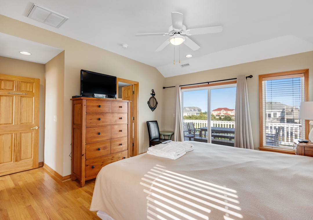 Step inside and be greeted by beautifully curated furnishings and spacious interiors that invite you to unwind. With seven king ensuite bedrooms, one queen ensuite bedroom with a wheelchair-accessible shower, an ensuite bedroom with two pyramid bunk beds, and an extra room with one pyramid bunk, everyone will find their perfect place to rest. The top floor boasts a sun-drenched open-concept living area with a gourmet kitchen, a dining table that seats 16, and a stylish great room with leather couches, a gas fireplace, and a 50” flat-screen TV. Step out onto the wraparound deck to enjoy ocean breezes from multiple seating areas.