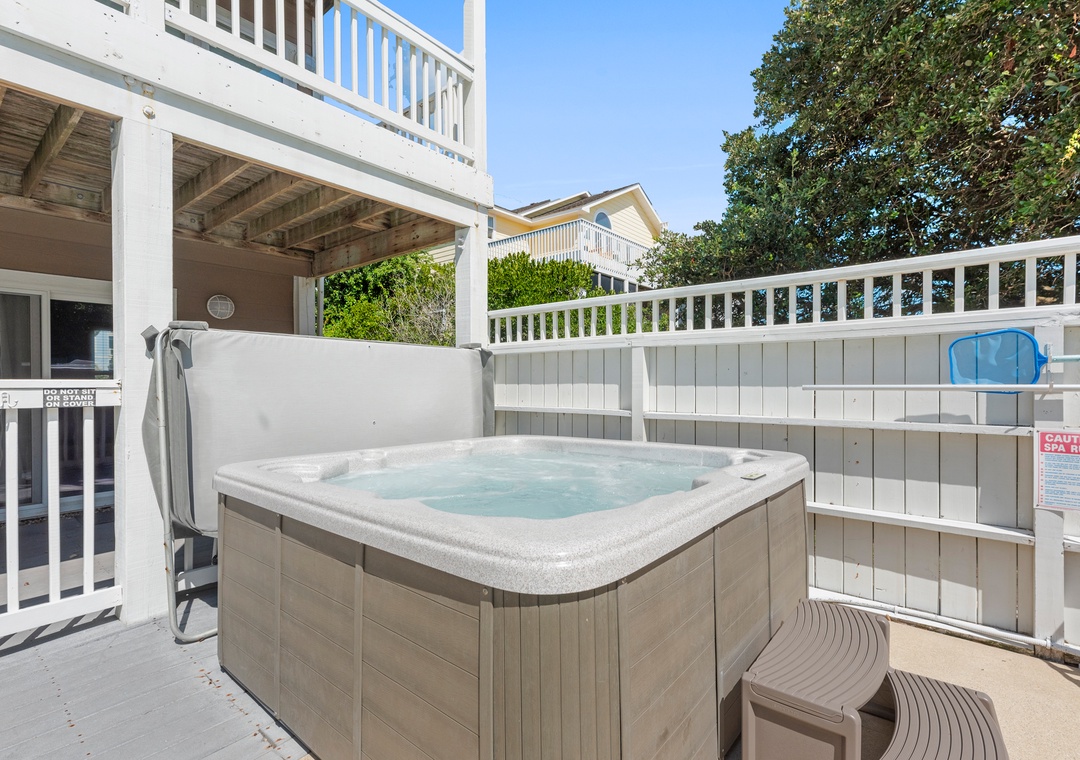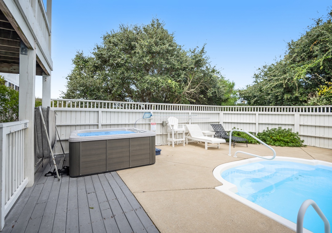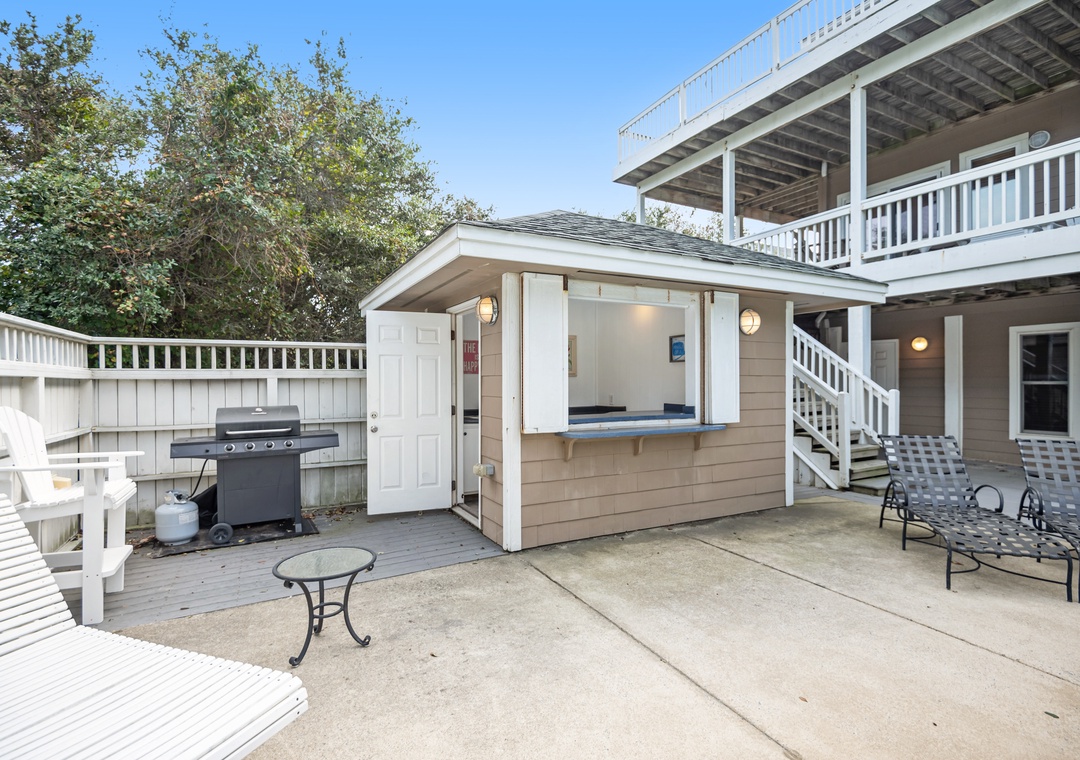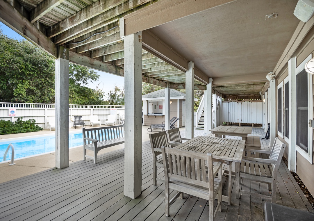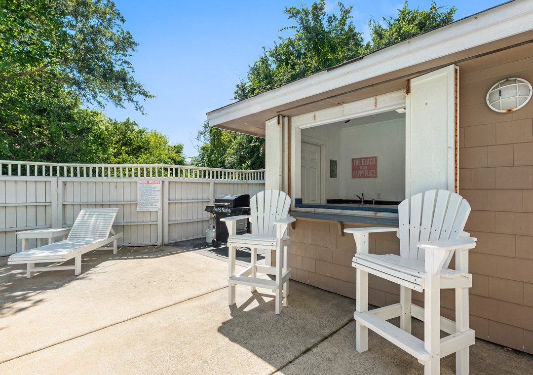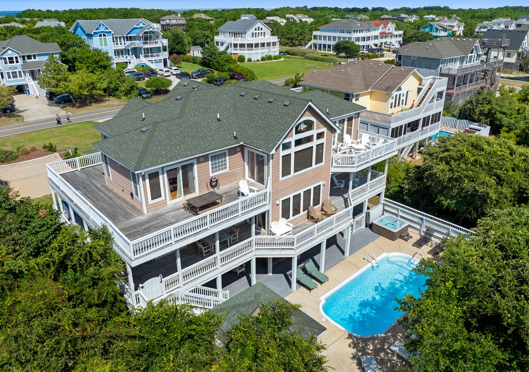 Outdoors, the private pool area is a true oasis. Lounge on one of 11 chaise lounges, soak in the poolside hot tub, or gather under the shaded tiki bar cabana, complete with a full kitchen, fridge, bar stools, picnic table, and an outdoor bathroom. Two outdoor showers, a gas grill, a charcoal grill, and a beach gear closet ensure every need is met. Sports lovers will enjoy the volleyball court, basketball hoop, soccer goal, and hockey net, all surrounded by a lush, sprinkler-maintained lawn.