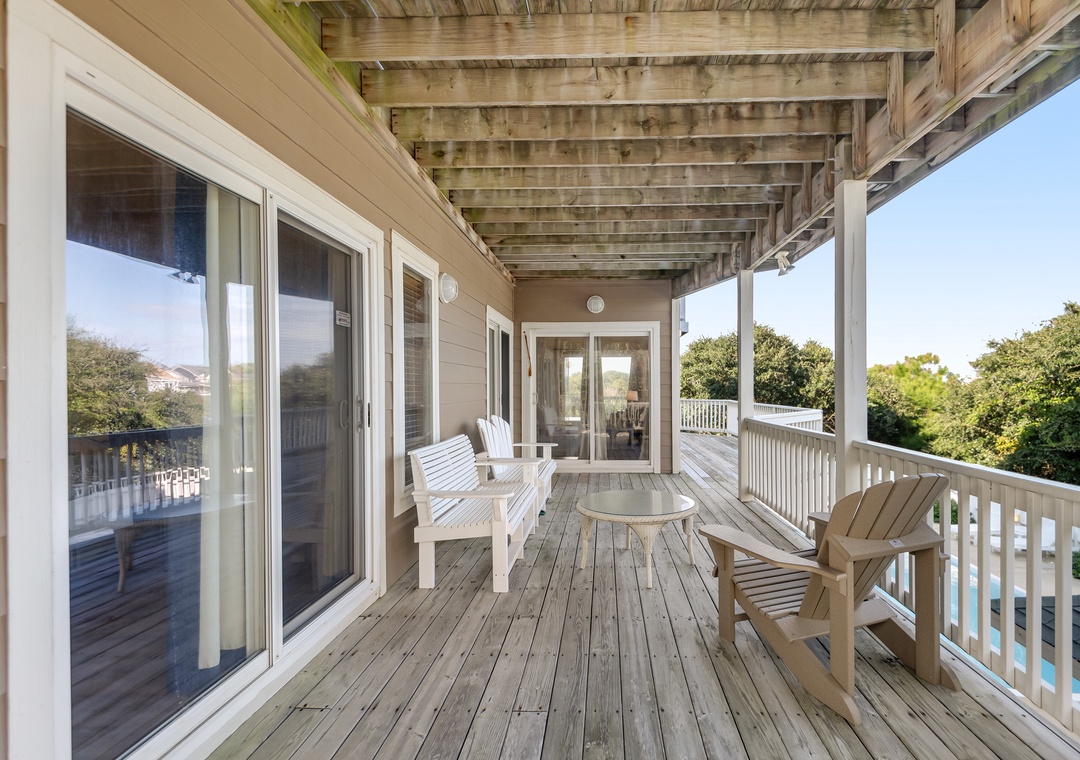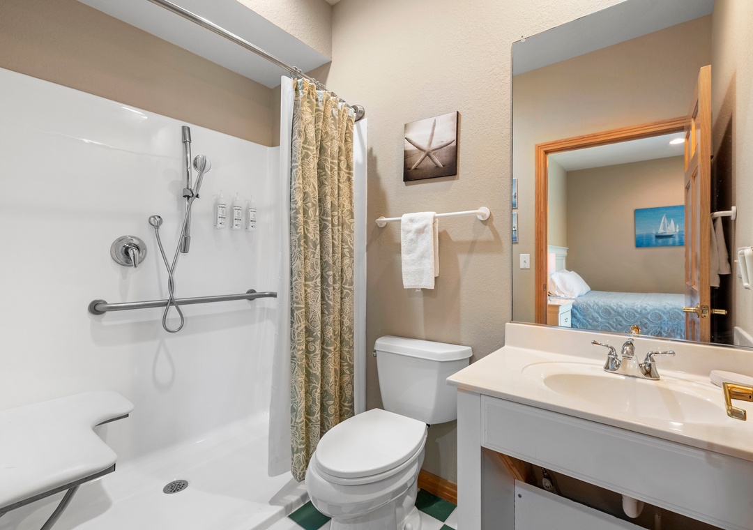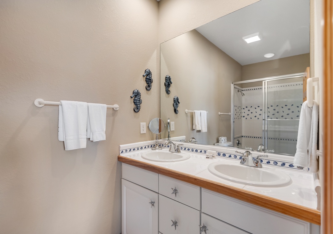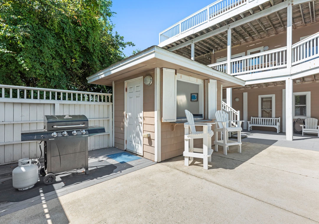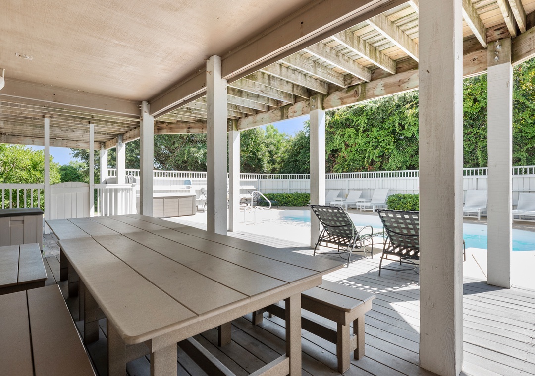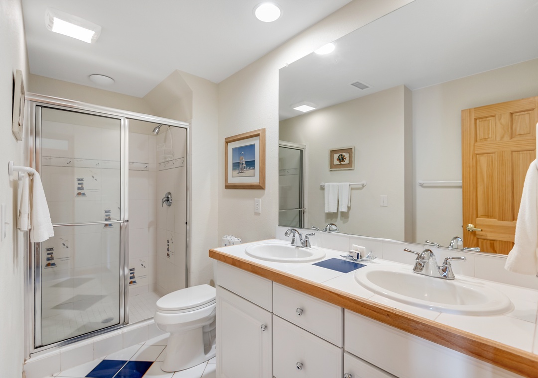 Outdoors, the private pool area is a true oasis. Lounge on one of 11 chaise lounges, soak in the poolside hot tub, or gather under the shaded tiki bar cabana, complete with a full kitchen, fridge, bar stools, picnic table, and an outdoor bathroom. Two outdoor showers, a gas grill, a charcoal grill, and a beach gear closet ensure every need is met. Sports lovers will enjoy the volleyball court, basketball hoop, soccer goal, and hockey net, all surrounded by a lush, sprinkler-maintained lawn.