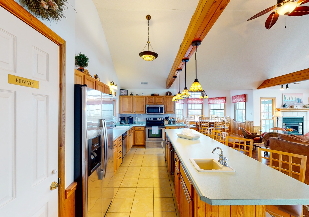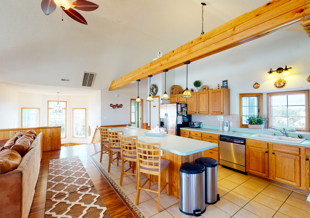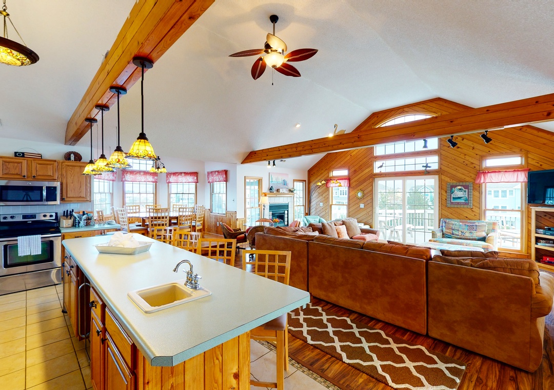 We loved the open kitchen/living room with the bedroom & bathroom close by. We loved the upper deck, the short walk to the beach. Loved the roominess of the bathrooms & bedrooms. The kitchen is well stocked. We love how the sofa & carpet are well - worn & loved....from years of families enjoying their stay at this house in Corolla.- Reviewed On: 9/6/2025