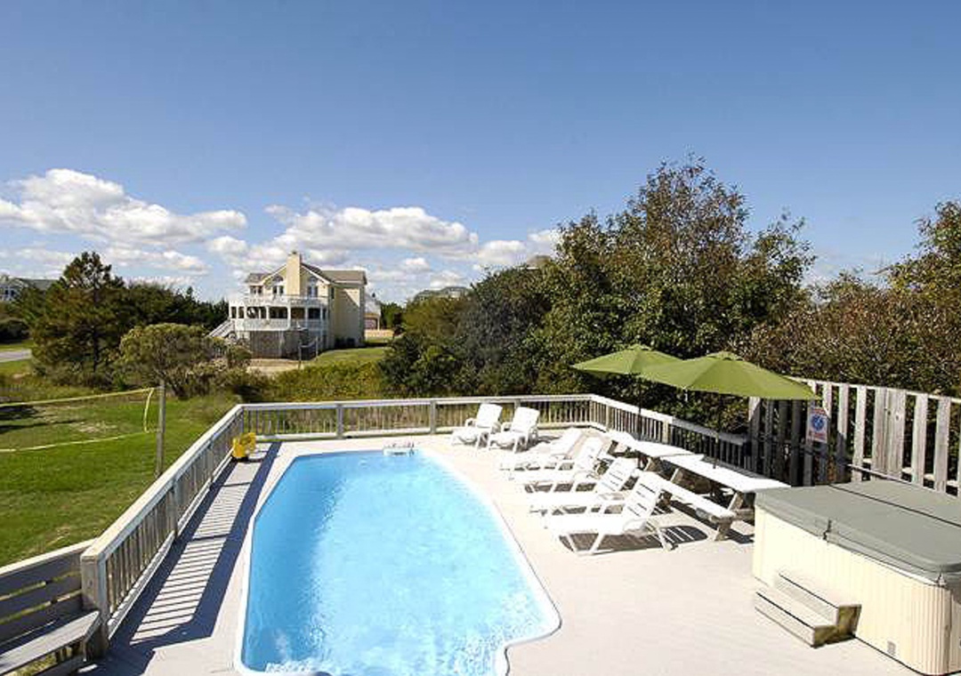 Amenities: Private unheated Pool, poolside bar, hot tub, gas fireplace, WiFi, six TVs, three DVD players, two Refrigerators, an outside Bar with bar stools, a whirlpool tub, a Keurig coffee maker, a basketball hoop, a lit volleyball court, a horseshoes set, bikes, and a gas grill. Enjoy 190 yards with beach access.