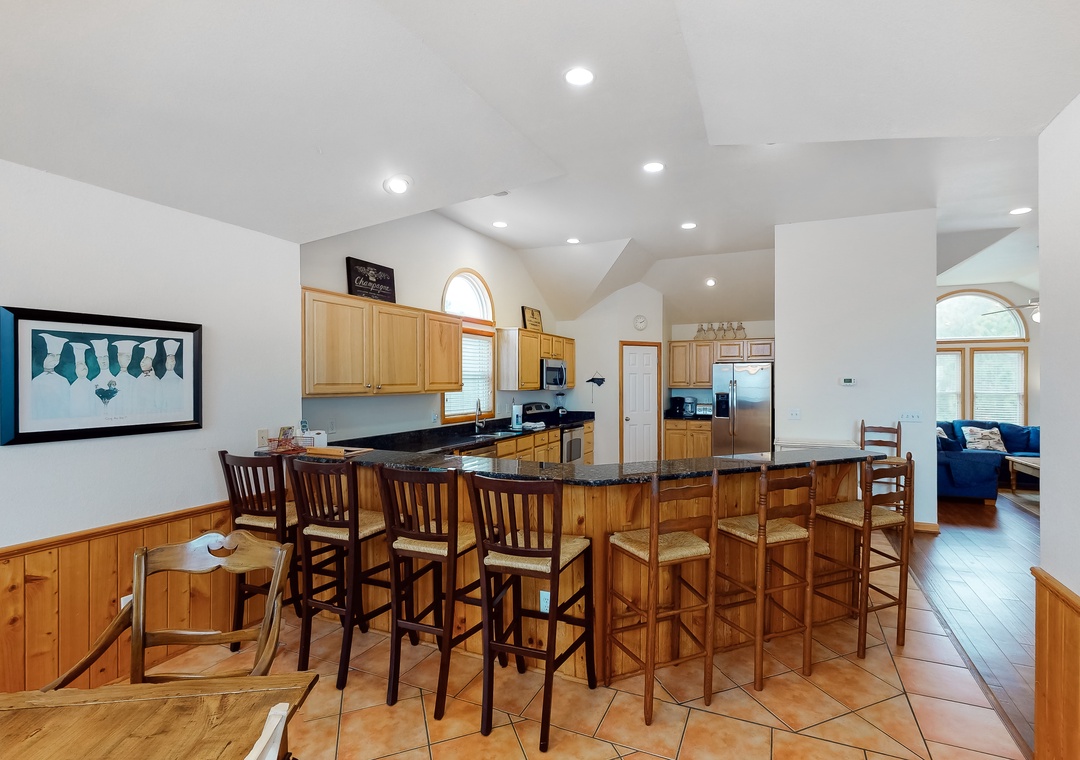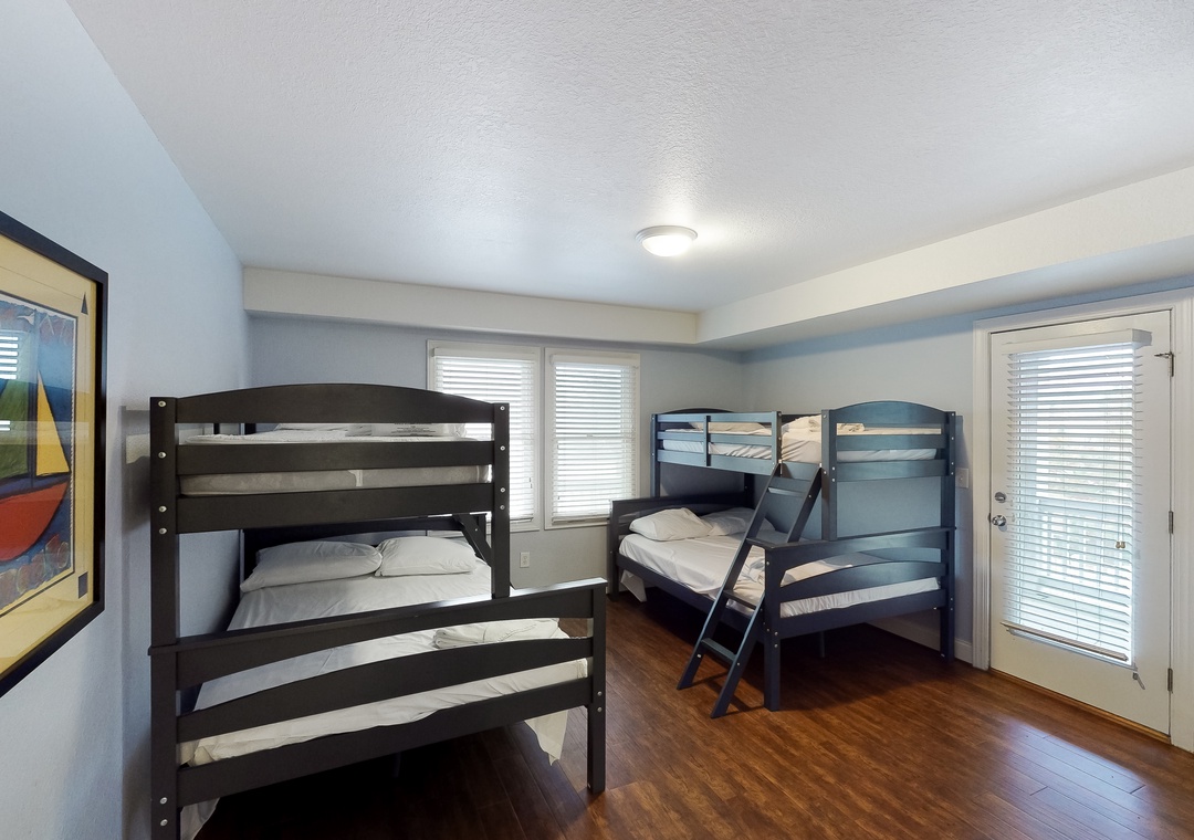 Mid Level: You will find two lovely main bedrooms with king beds on this floor, in addition to a room with twin beds that shares a bath with a bedroom that features two twin-over-double bunk beds. All rooms on this floor have deck access.