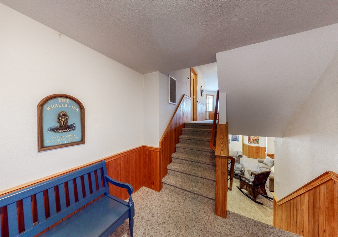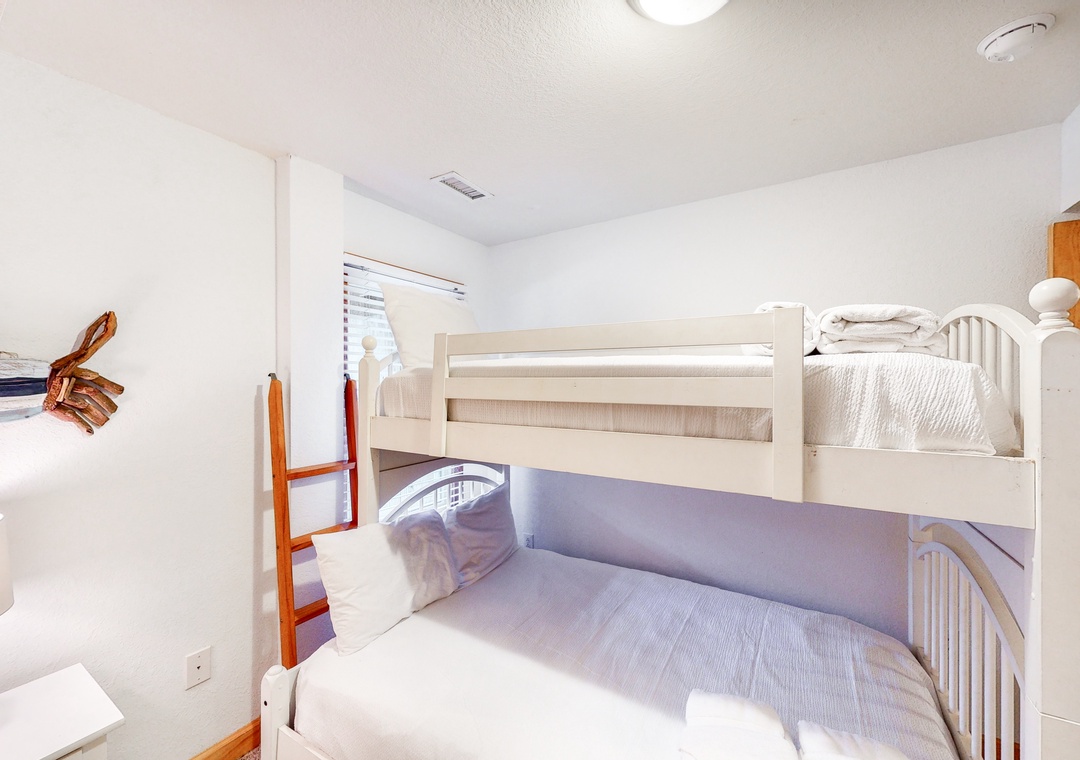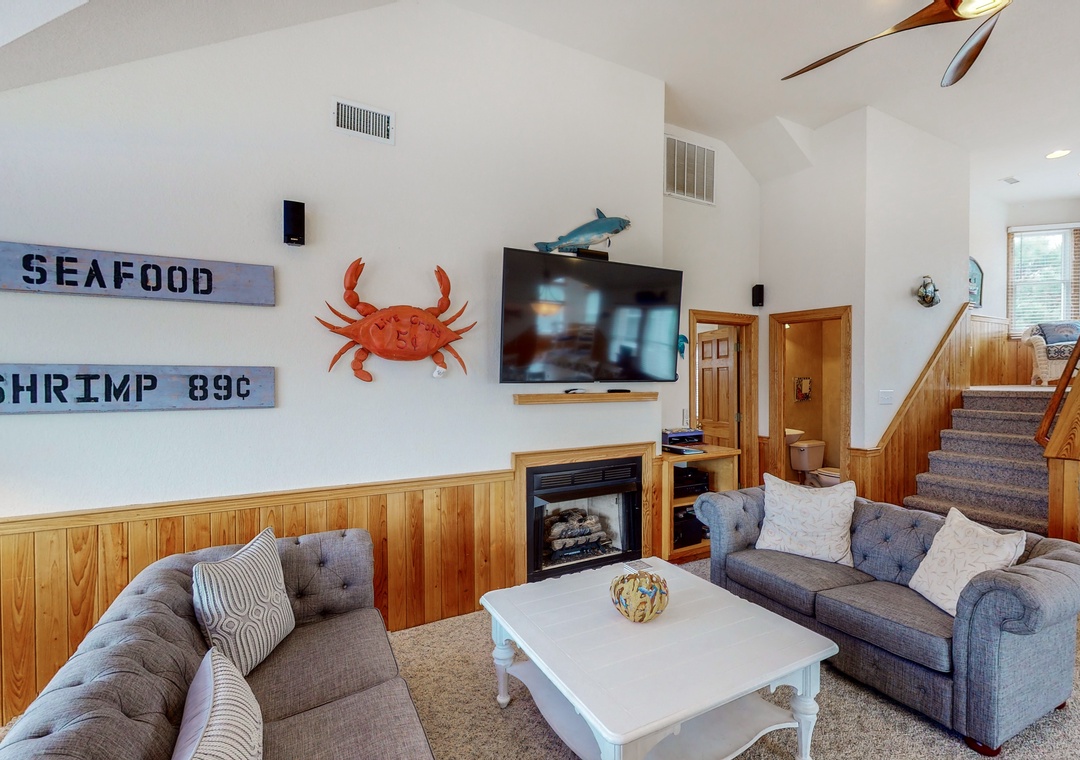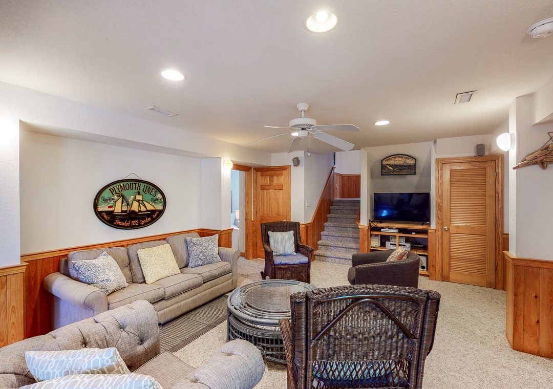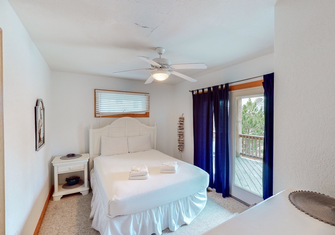 The mid level is home to four Queen primary bedrooms, all with deck access and two with TVs. Enjoy some shade while sitting on the mid level decks and taking in the ocean air.