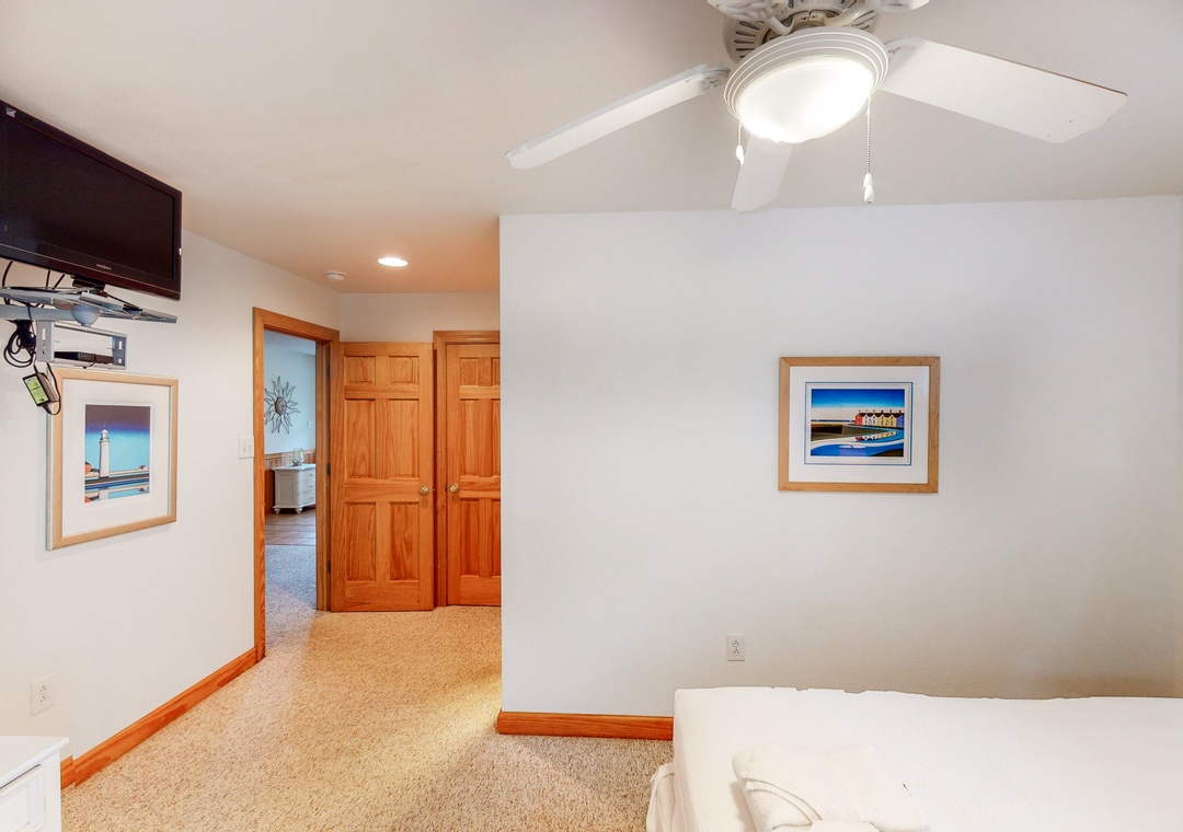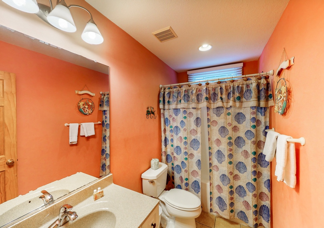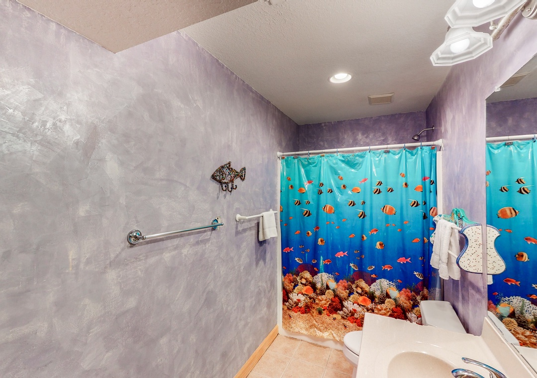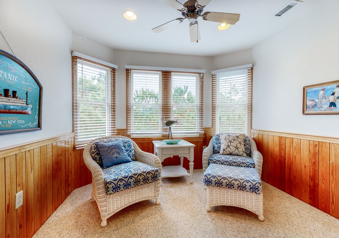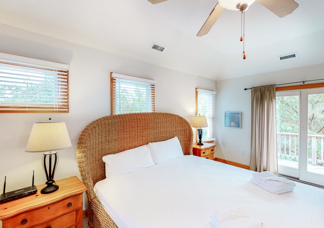 The mid level is home to four Queen primary bedrooms, all with deck access and two with TVs. Enjoy some shade while sitting on the mid level decks and taking in the ocean air.