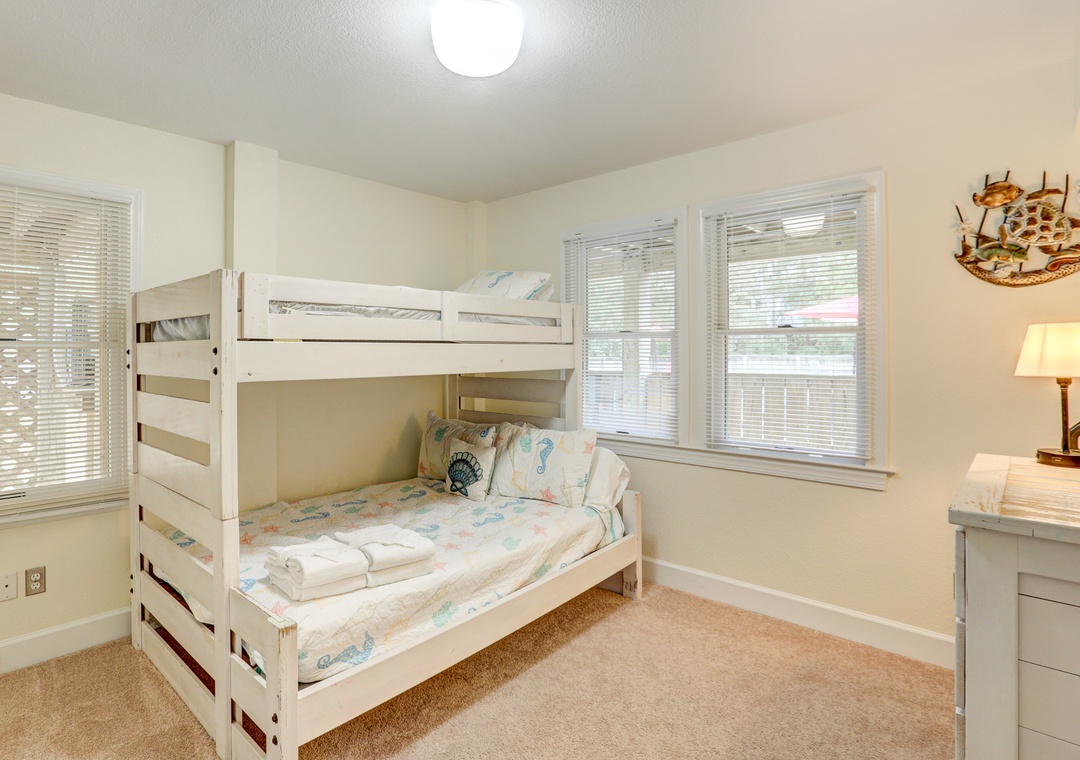 Inside, the fun won't stop, as this layout this absolutely ideal for larger groups and families. Split into three floors, Shore Thing boasts a full kitchen, an accommodating dining table, and an open living area on the top floor that will be ideal for gathering with everyone for meals or movie nights. Plus, the primary suite also calls this third-level home with an ensuite bath. Head down to the second level and you will find four more bedrooms including another primary suite with an attached bath complete with a jetted tub. Two of these bedrooms also have access to the mid-level wraparound deck! The kiddos and young at heart will love hanging out downstairs because two bunk rooms, a wet bar, a flatscreen TV, and a pool table await for unlimited entertainment and a bit of friendly competition. With so much fun just waiting to be had, what are you waiting for?