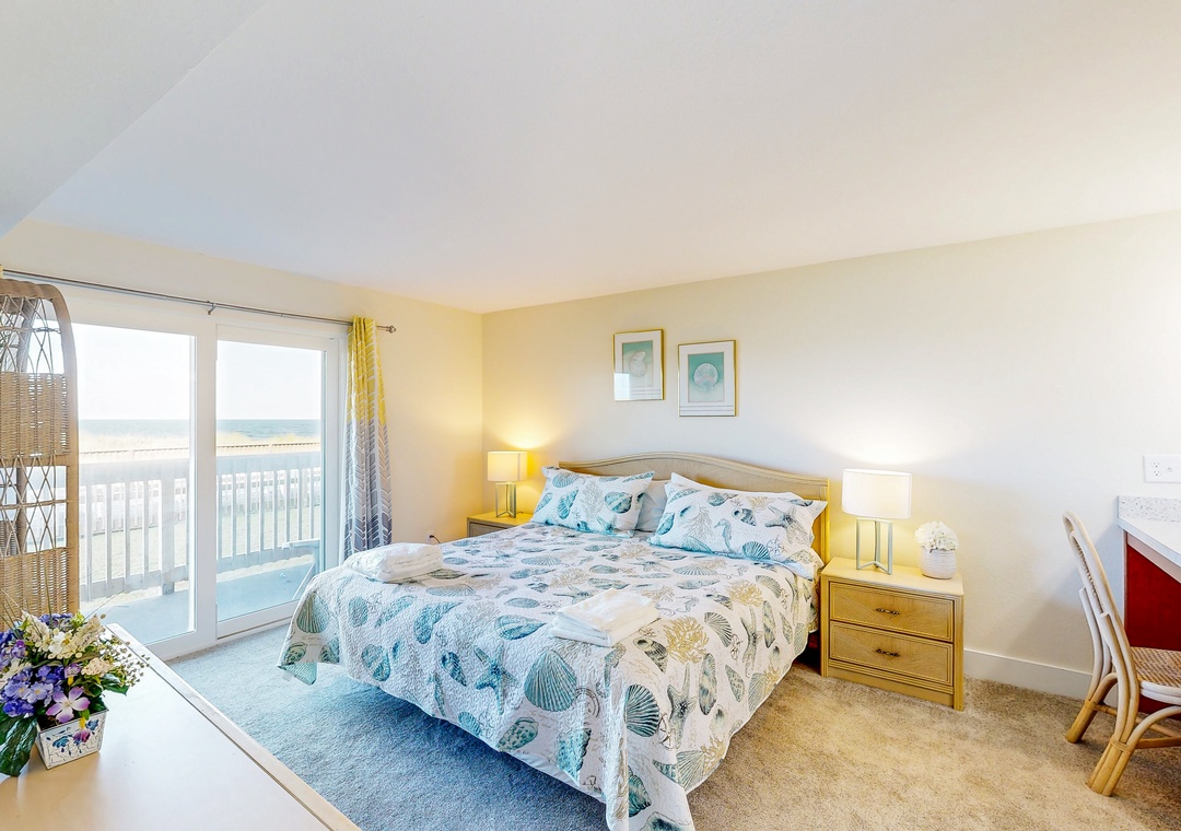 Experience oceanfront living at its finest in this beautiful 2-bedroom, 2-bathroom condo located in the highly sought-after South Nags Head community. With stunning ocean views from the newly installed sliding glass doors and the covered deck, you can enjoy the soothing sound of the waves right from the comfort of your own home.