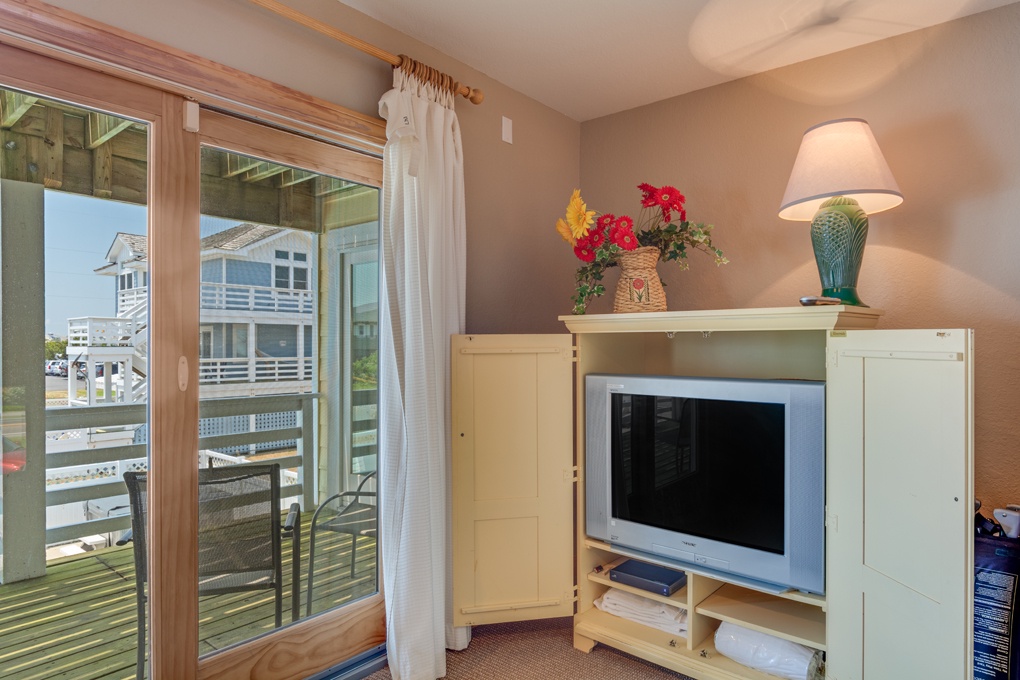 Thank you for your review. We appreciate your feedback and are glad to hear that you had a nice stay overall. Regarding the door alarm, we understand your request to turn it off, but this feature is in place for the safety and security of our guests. We hope you still enjoyed your time in Nags Head and we look forward to welcoming you back in the future.Village Realty staff