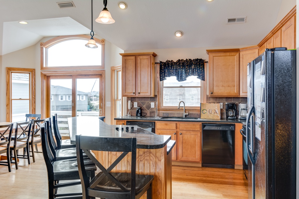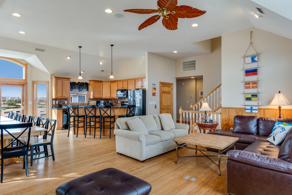 You can be Catchin' Zs at this beautiful, oceanside home with a private pool, tiki bar and hot tub. Plenty of room for family and friends to make those OBX memories. Relax on one of the many decks, challenge someone to a game of pool, stroll on the beach or just chill by the pool. The living, dining and kitchen area offer plenty of space for everyone to gather, the hanging flag artwork in the living area says it all - Relax and OBX, you've found the perfect home to do that!