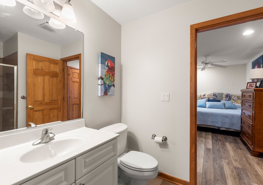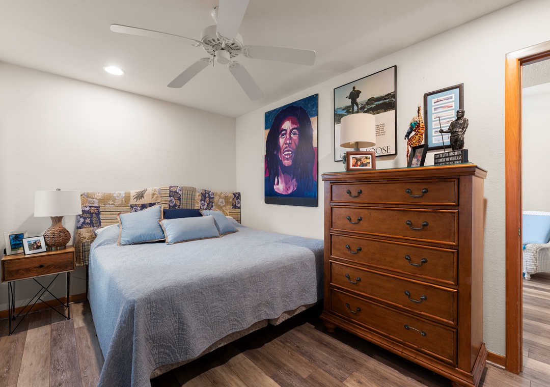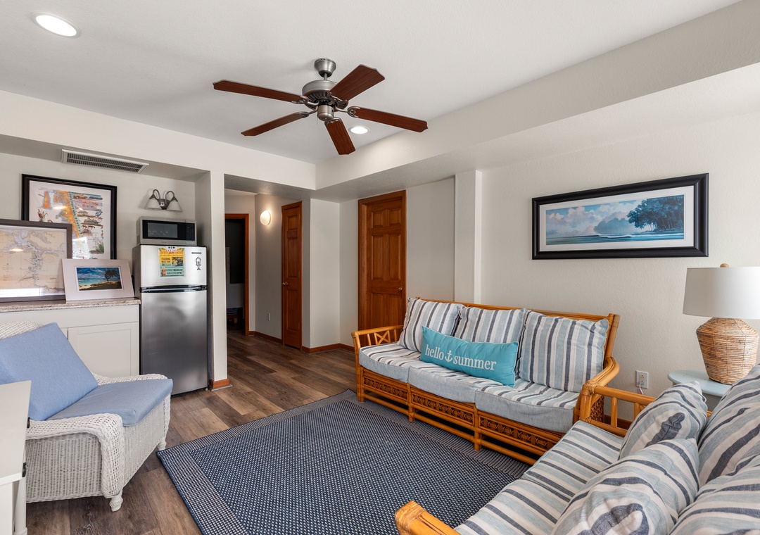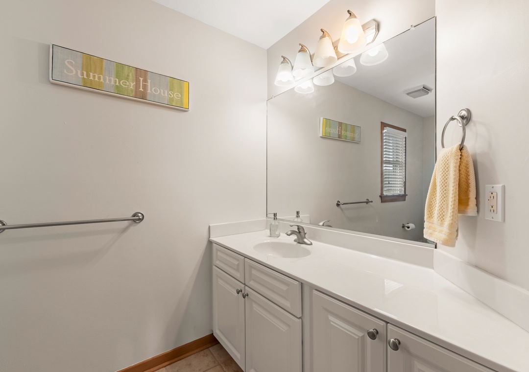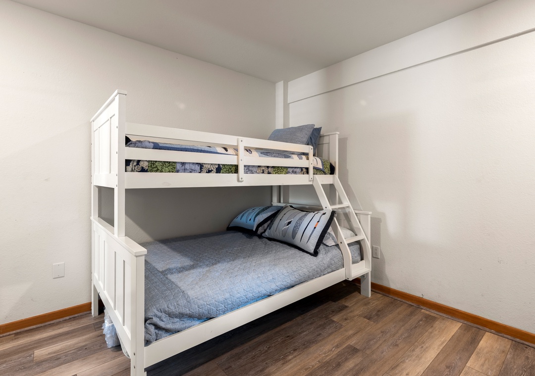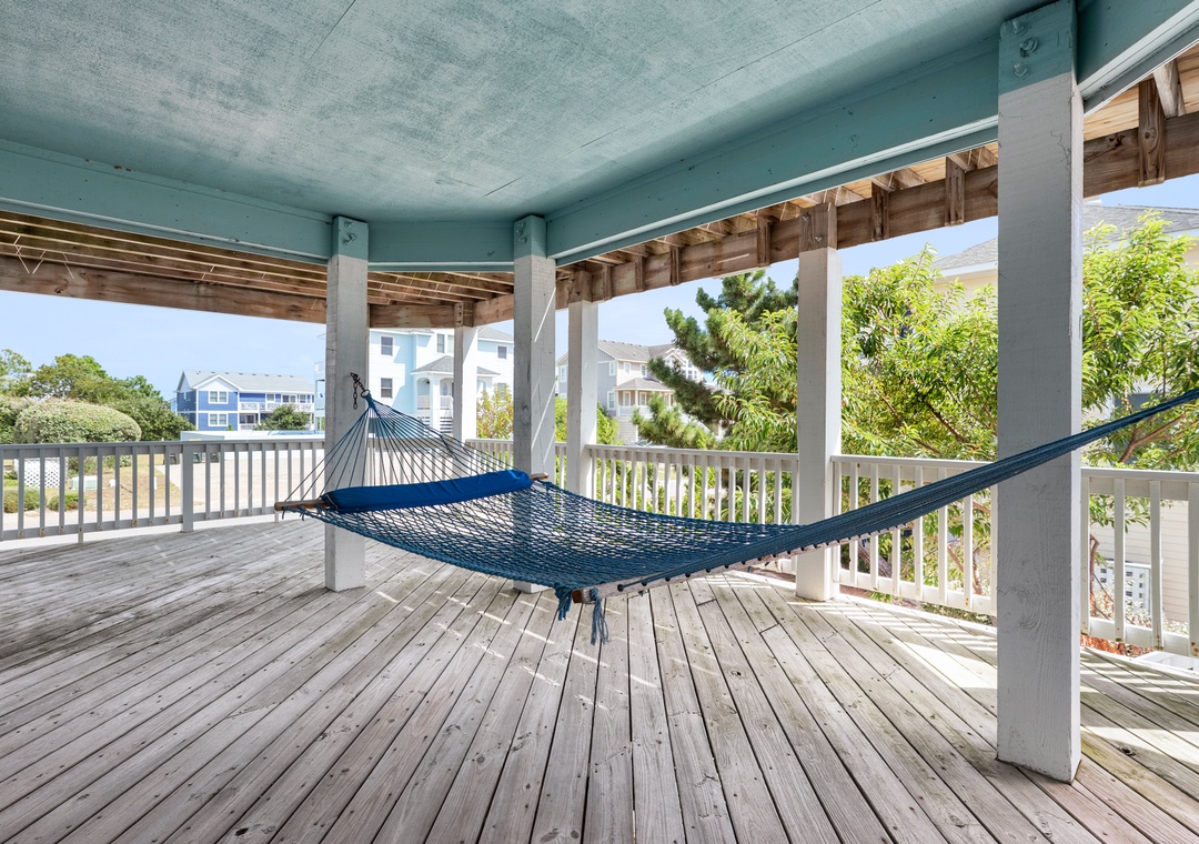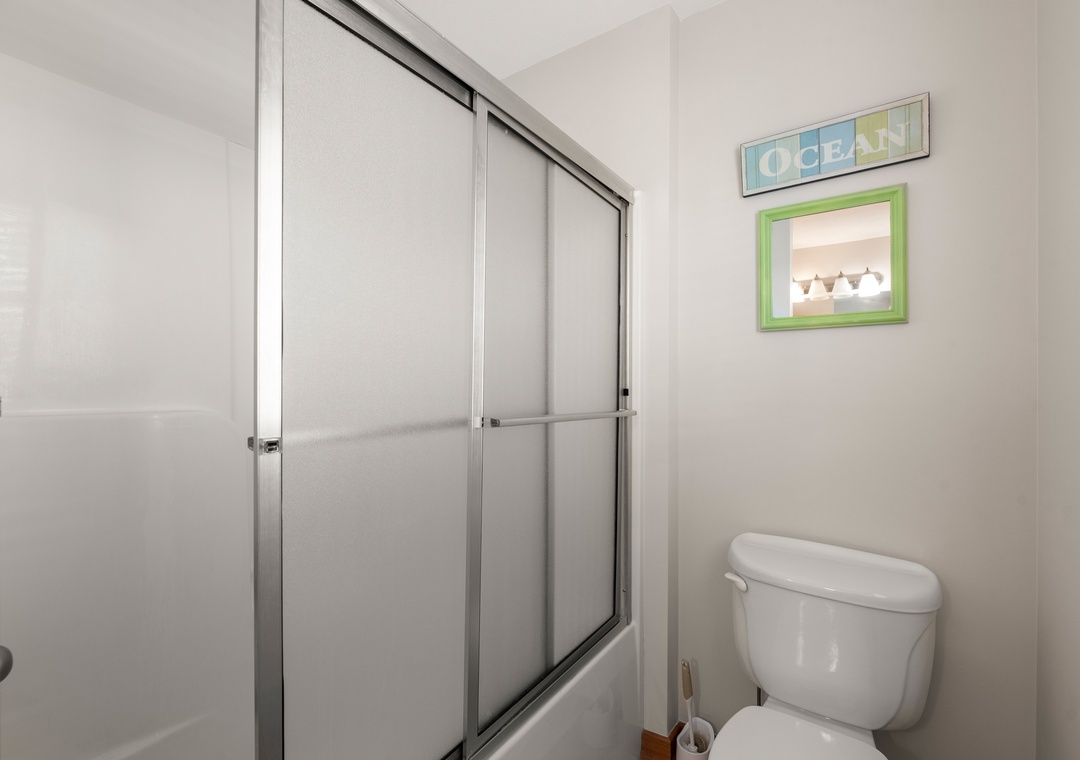 Upstairs, the middle level offers a king ensuite and two charming queen bedrooms that share a bathroom, all with deck access overlooking the sparkling pool below. But the real showstopper is the top floor, where a spacious king ensuite opens to a dreamy, screened porch with views of the sound and sunsets that will steal your breath away. The open-concept living area flows into a bright, modern kitchen with island seating for your morning coffee crew. And tucked away nearby is a versatile nook, whether you need a playroom, a quiet office, or a cozy reading spot with a daybed, it’s got you covered.