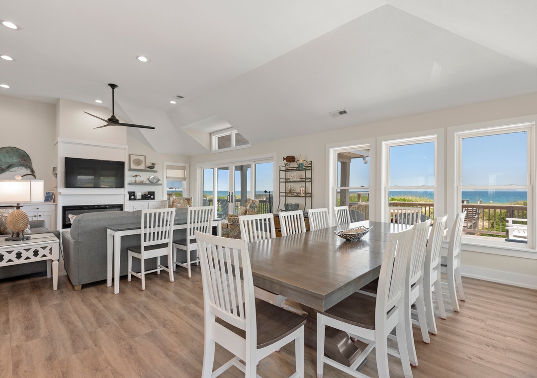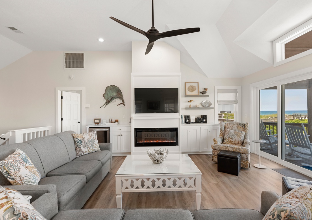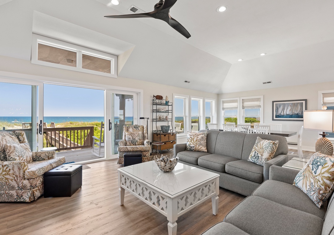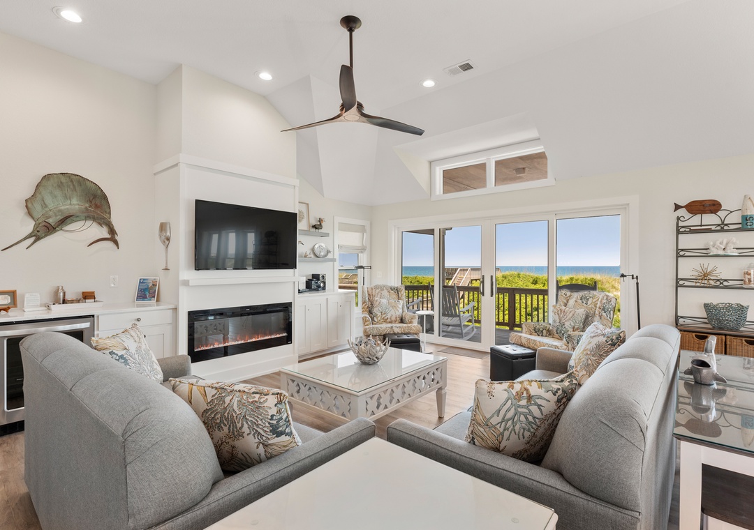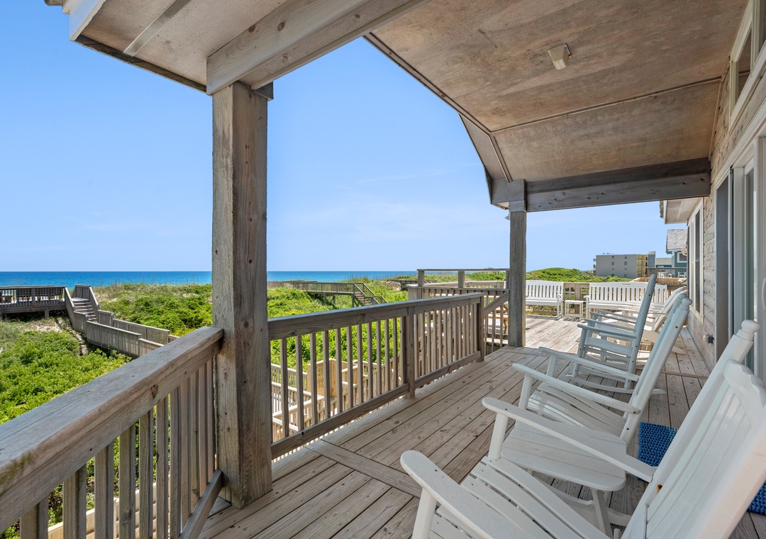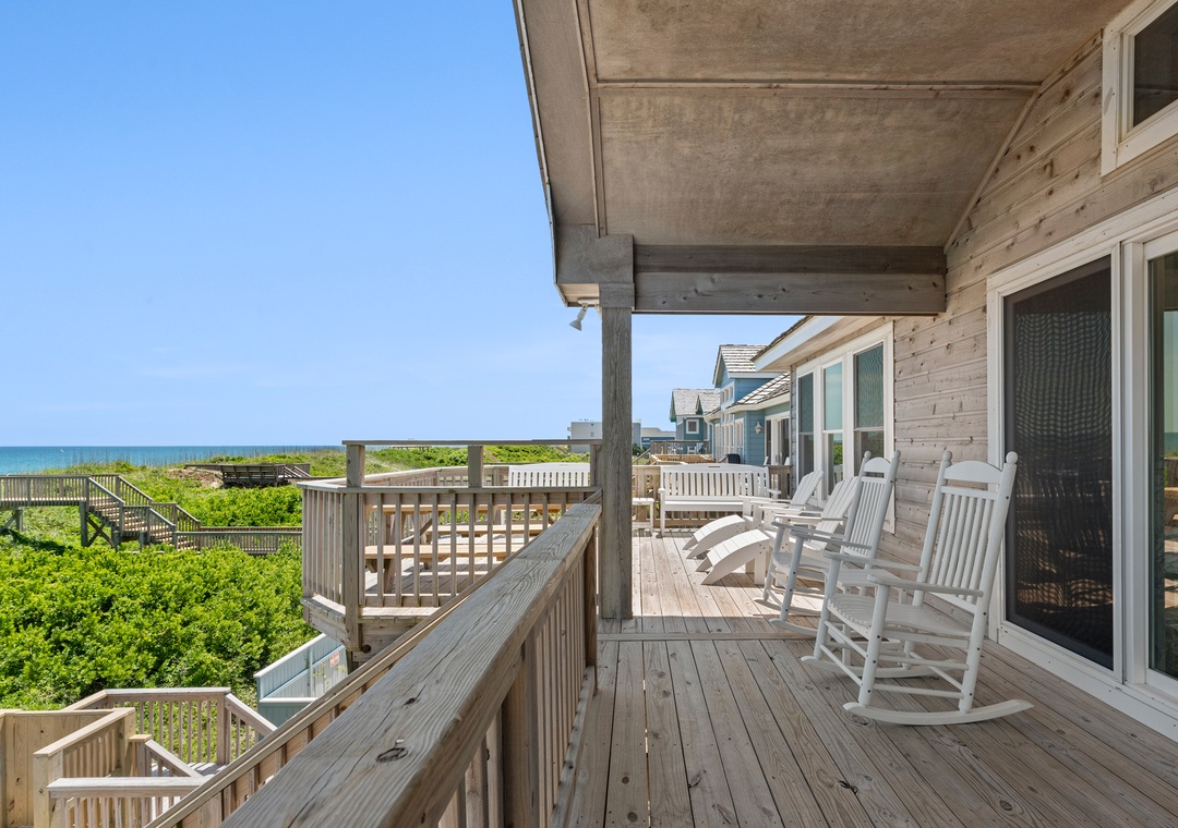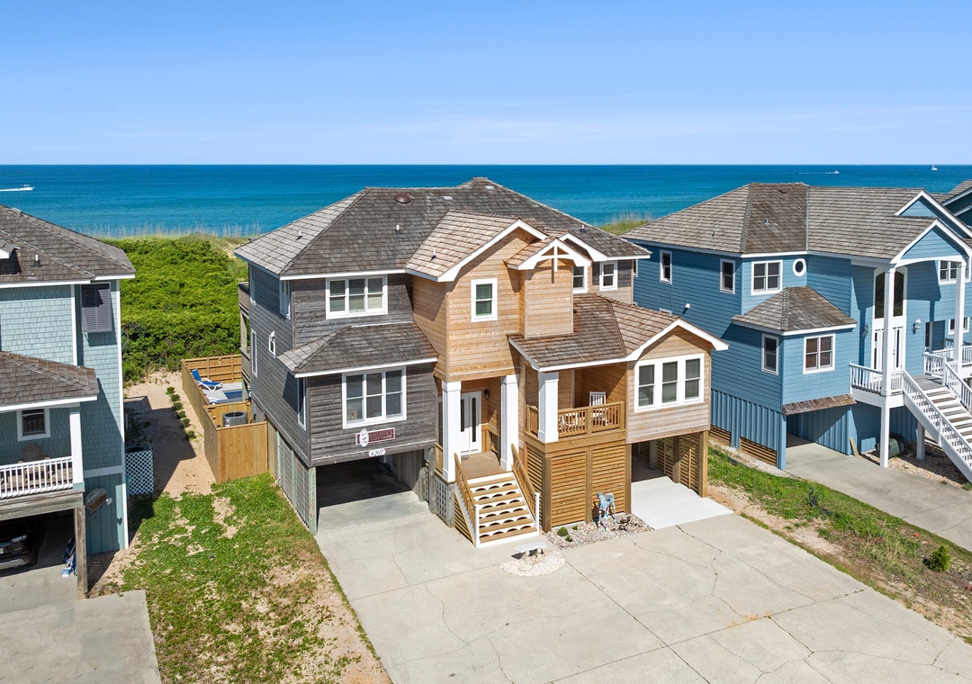 'Ballahack Cottage' is a 7 bedroom, 6 ½ bath oceanfront vacation home featuring: hot tub, game room with a video console with 60 classic arcade games, private walkway to the beach, 3 master bedrooms, smart TVs with cable service streaming provided, DVD player, Wi-Fi, and an electric fireplace. Other amenities include 2 refrigerators, a beverage center, an outdoor grill, picnic table, as well as 2 outside showers, covered decks in both the front and back of the house, a dune deck on the ocean side and a shaded hammock for ultimate relaxation.