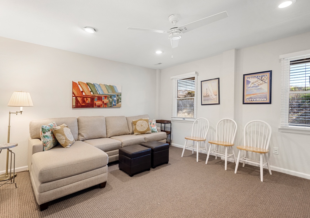 All the comforts of home coupled with the best views in The Village at Nags Head. Watch the sunset over the golf course and Roanoke Sound... See spectacular Outer Banks sunrises from your living room or bedroom.